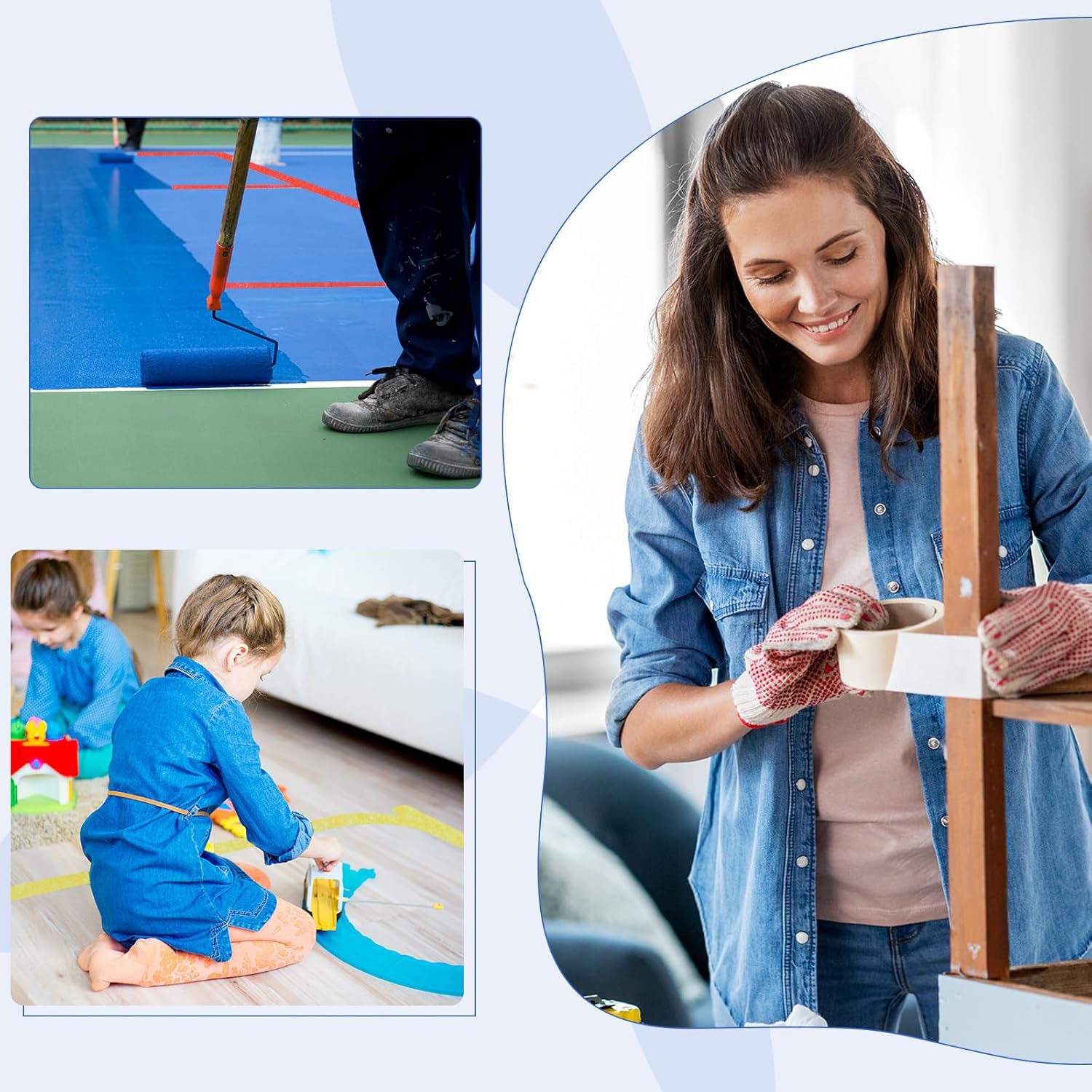 - This masking tape is suitable for multi-purpose, DIY, crafts, art, painting, drawing, wall, labeling, decoration, car painting, home, office; and can be used on smooth or slightly textured walls, painted walls, decoration, wood products, baseboards, glass, metal, tile, plastic, etc. Meet your diverse needs