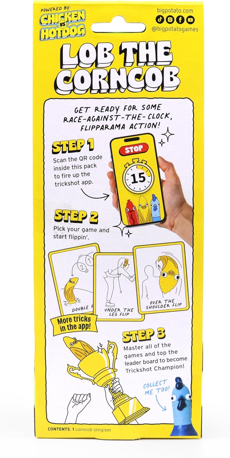 - IT’S FLIPPING GOOD FUN: It’s the bottle flip challenge meets a daredevil vegetable. Lob the cob with friends to see who can land those trickshots first.