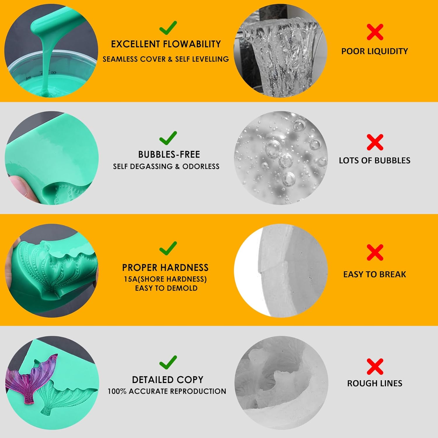 - Premium platinum-cured silicone - Our 15A green liquid mold making silicone rubber is made from safe, non-toxic, and odorless silicone, flexible and soft. Perfect choice for you to make homemade art projects such as silicone molds, sculpture or prototype reproductions!