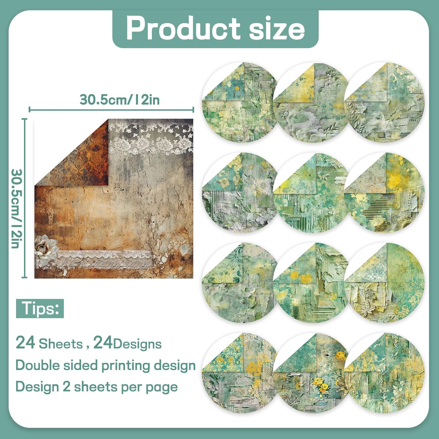 Scrapbook Paper 12x12 inch, 24 Sheets DIY Origami Decorative Craft, Double sided printing, Photo Album Decor Wooden-free Paper for Gift Wrapping Card Making Collage Album Decorative (Green)