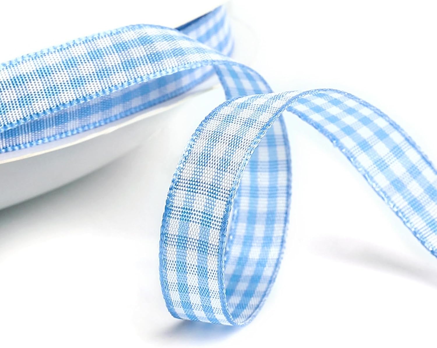 Classic Gingham Checkered Ribbon, Assorted Colors Premium Polyster Plaid Checkered Craft Ribbon for Gift Wrapping, DIY Projects, Hair Bows,Scrapbooking & Party Decor (Light Blue, 3/8x50Yd)
