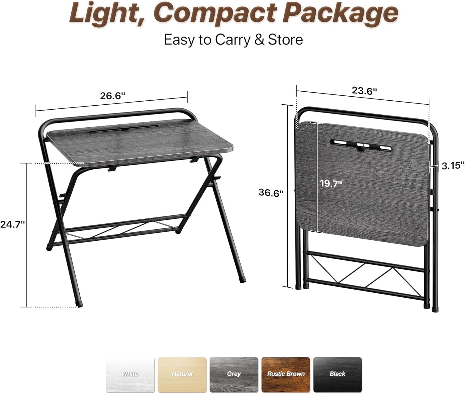 - ăCompact, Foldable & Space-SavingăPerfect for small spaces! Fold Size: 3.15'' X 26.6''X 36.6''. This lightweight foldable computer desk tucks neatly under beds, behind sofas, against walls, or in closets, small dorm. When you need more room, simply fold this office desk up and store it away. Ideal for maximizing your space