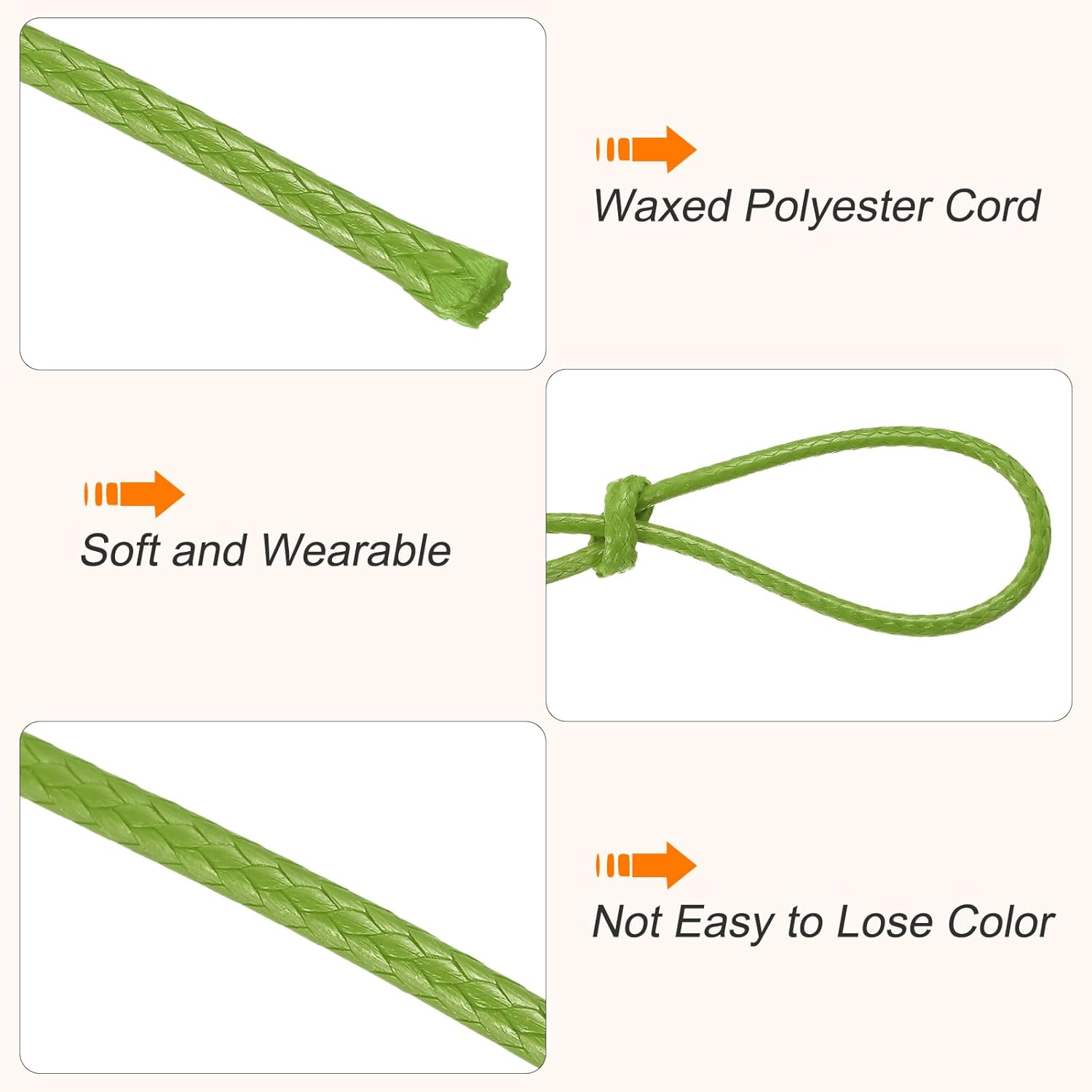 - This waxed ropes has bright and beautiful color,easily knotted and braided, you can use this waxed cotton thread to make bracelets, jewelry, friendship bracelets, macramé rope projects, packaging, leather sewing, scrapbooking, leather working, beading, and more. It is an important raw material for jewelry making and DIY crafting.
