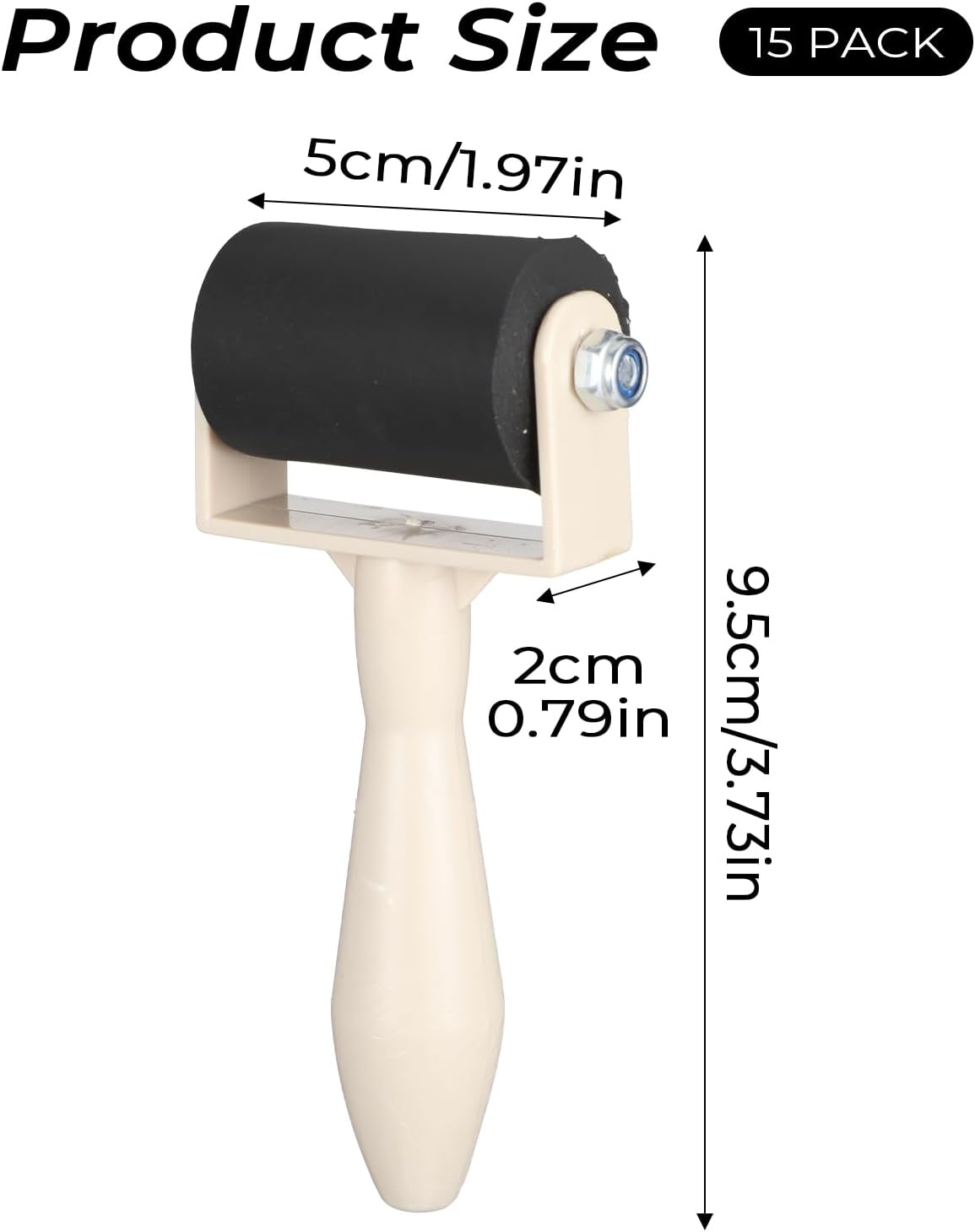 - Complete Printing Set:15pcs embossed rubber brayer rollers (9.5x5cm) with smooth-polished plastic handles. Durable rubber surface maintains shape through repeated use in printmaking projects