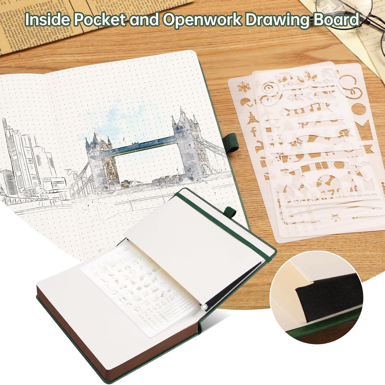 - Humanized Design: journaling notebooks with built-in page numbering, easy to find important content quickly; openwork drawing board, you can design on a dotted page; elastic closure and pen holder ring is easy to start writing at any time; back pocket can be used for organizing sticky notes, business cards and other small objects, practical and easy to use
