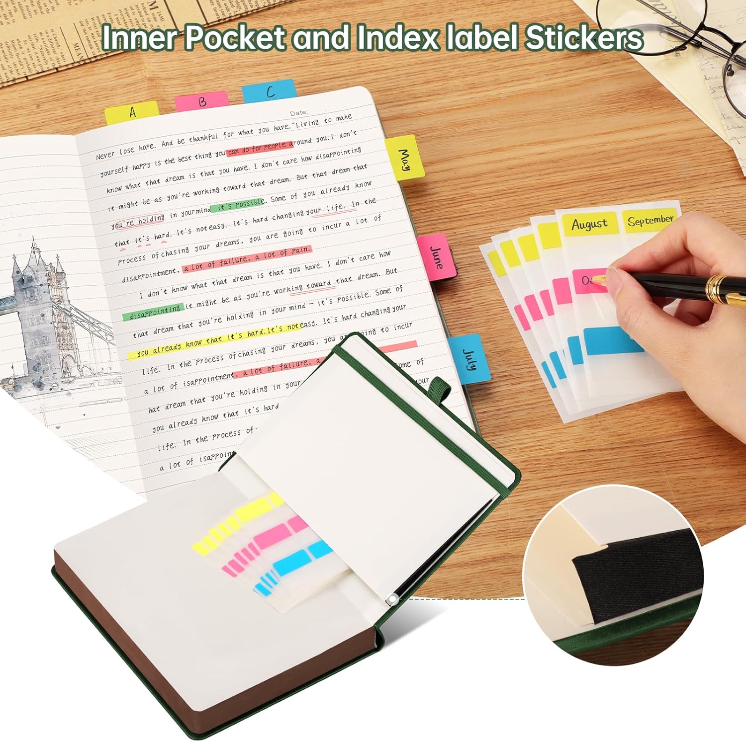 - Humanized Design: The journaling notebooks come with built-in page numbers and dividers to make it easy to quickly find what's important; the elastic closure and pen holder loop make it easy to start writing at any time; and the pocket on the back can be used to organize sticky notes, business cards, and other small items, making it practical and easy to use