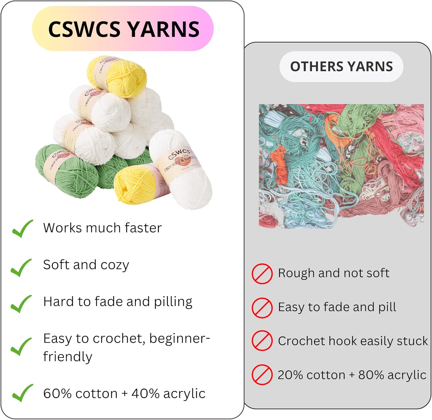 - Premium Materials: Fine/Sport-weight yarn is perfect for beginners learning to crochet or knit. Cotton-acrylic (60% cotton, 40% acrylic) blend provides a smooth, modern finish; Yarn will hard to split, fray, or snag; 1.69 oz/50 g, 109 yds/100 m.
