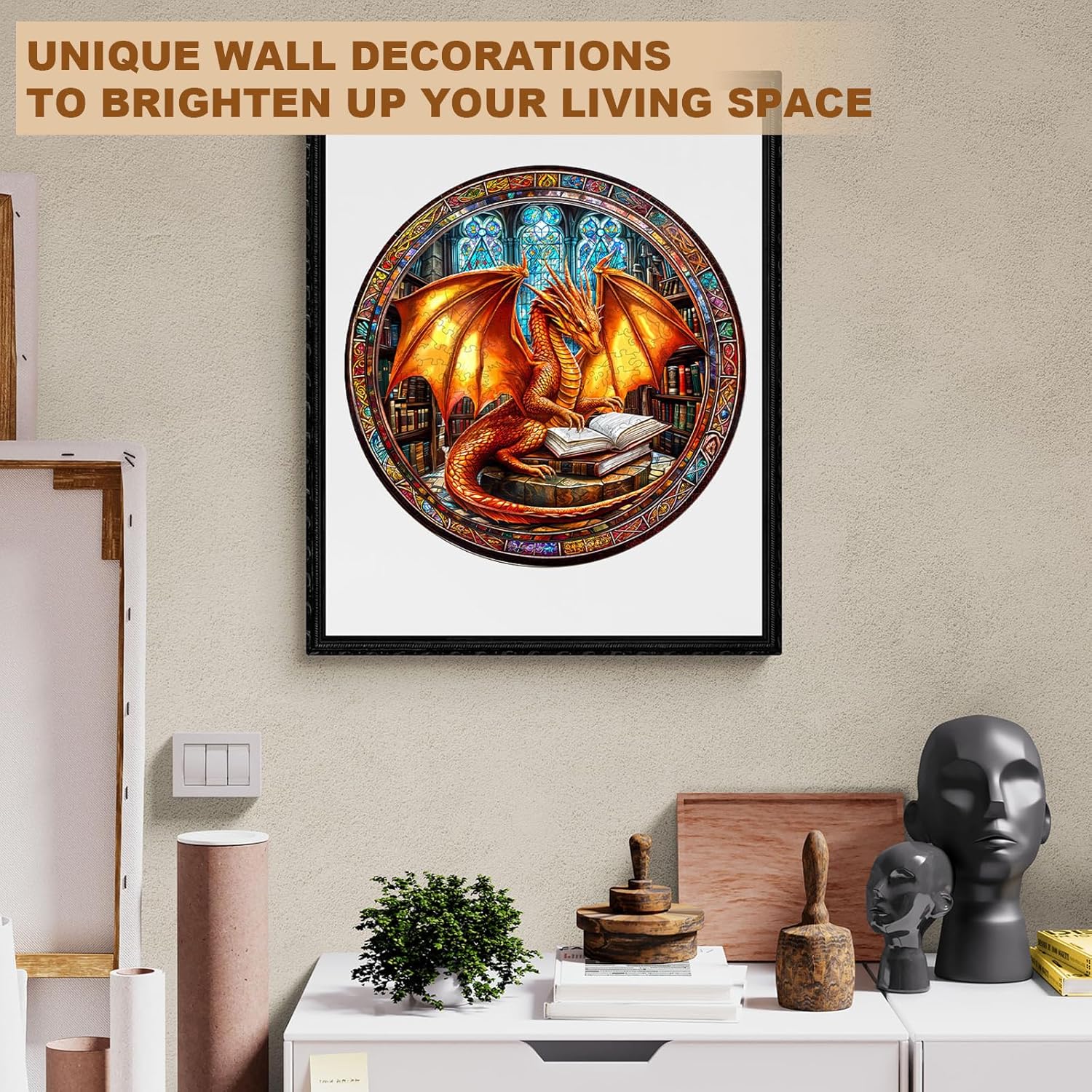 - 【Exquisite Decorative Painting】: This wooden puzzle piece perfectly blends the concepts of a dragon and a library into a flat art painting, full of creativity, making it an excellent focal decoration for study rooms, living rooms, offices, or any space for fantasy/literature enthusiasts, showcasing unique taste.