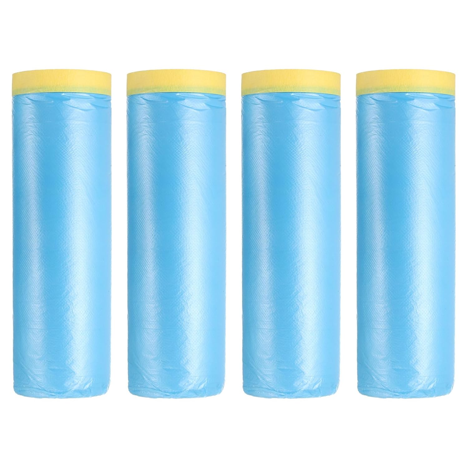 uxcell Pre-Taped Masking Film, 4.9ft x 66ft High-Tack Painters Tape Plastic Drop Cloth with High-Tack Painters Tape for Painting Protection Blue Film 4Pcs