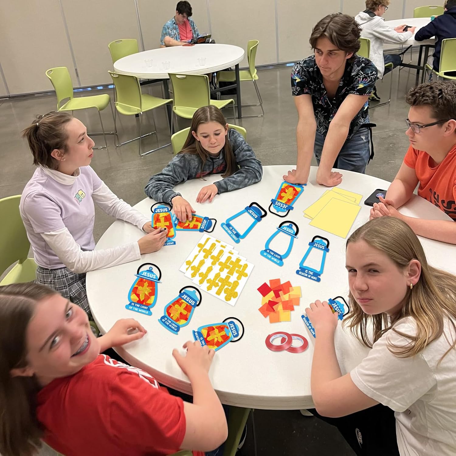 - Christian Crafts Kit: Includes 40 pre-cut oil lamp in 6 nativity designs, 1000 vibrant tissue paper sheets in 5 colors, 40 transparent adhesive sheets, and 2 rolls of red ribbons for hanging. Great for VBS, Sunday School, or church group activities