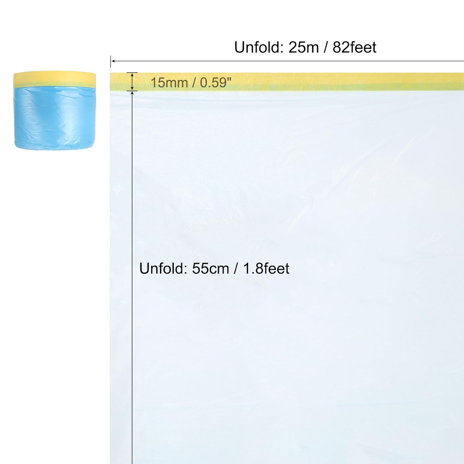 uxcell Pre-Taped Masking Film, 1.8ft x 82ft Plastic Paint Drop Cloth with Medium-Tack Painters Tape for Painting Spraying Protection Blue Film 6Pcs