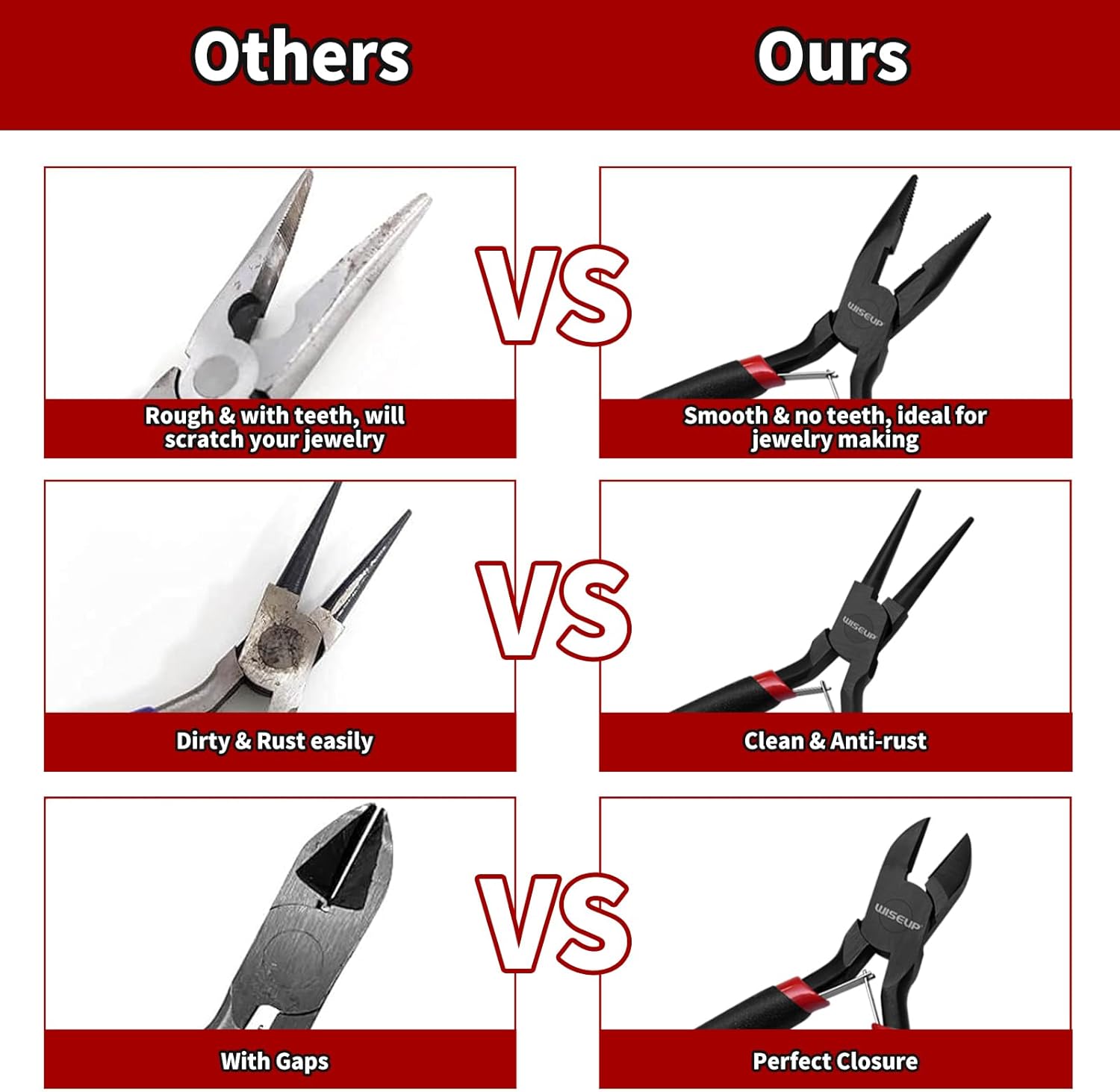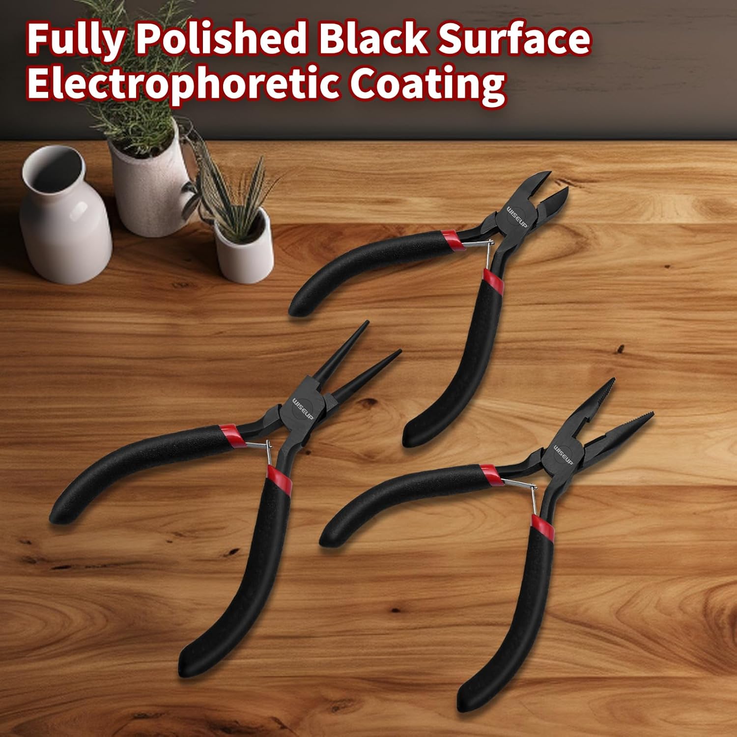 - Industrial-Strength Durability:Forged from industrial-grade carbon steel and hardened through advanced heat treatment, WISEUP Jewelry pliers deliver exceptional hardness and resistance to wear. The oxide protective coating further enhances corrosion resistance, ensuring longevity even in harsh environments