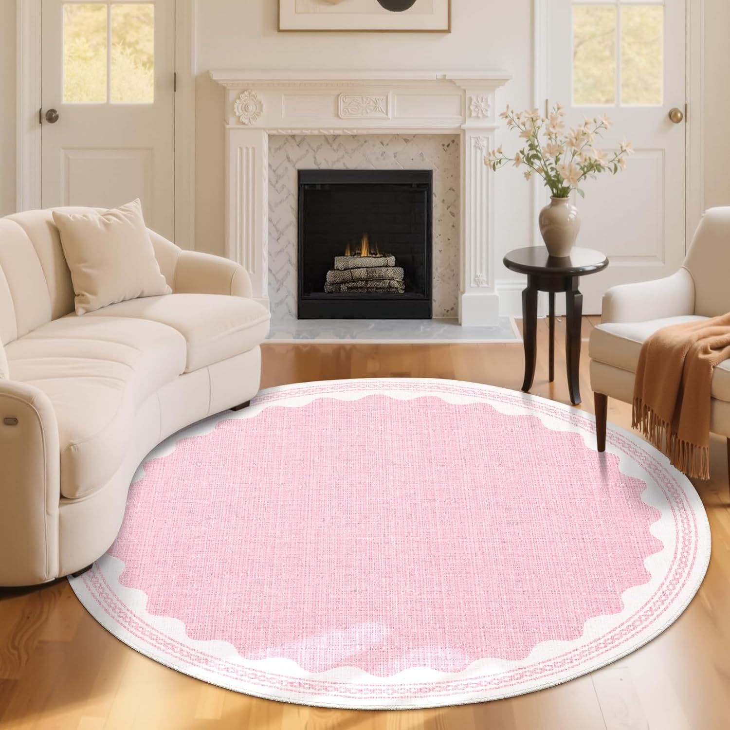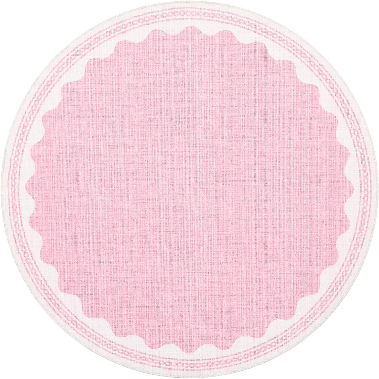 - 【Timeless Unique Scalloped Design】It is a gorgeous washable and foldable round rug featuring a minimal neutral cream tone with a scalloped edge design. A timeless, modern, and unique design to add to any space.Due to the nature of printing, the round pink rugs design may vary slightly from the product photos, making each scalloped rug unique.