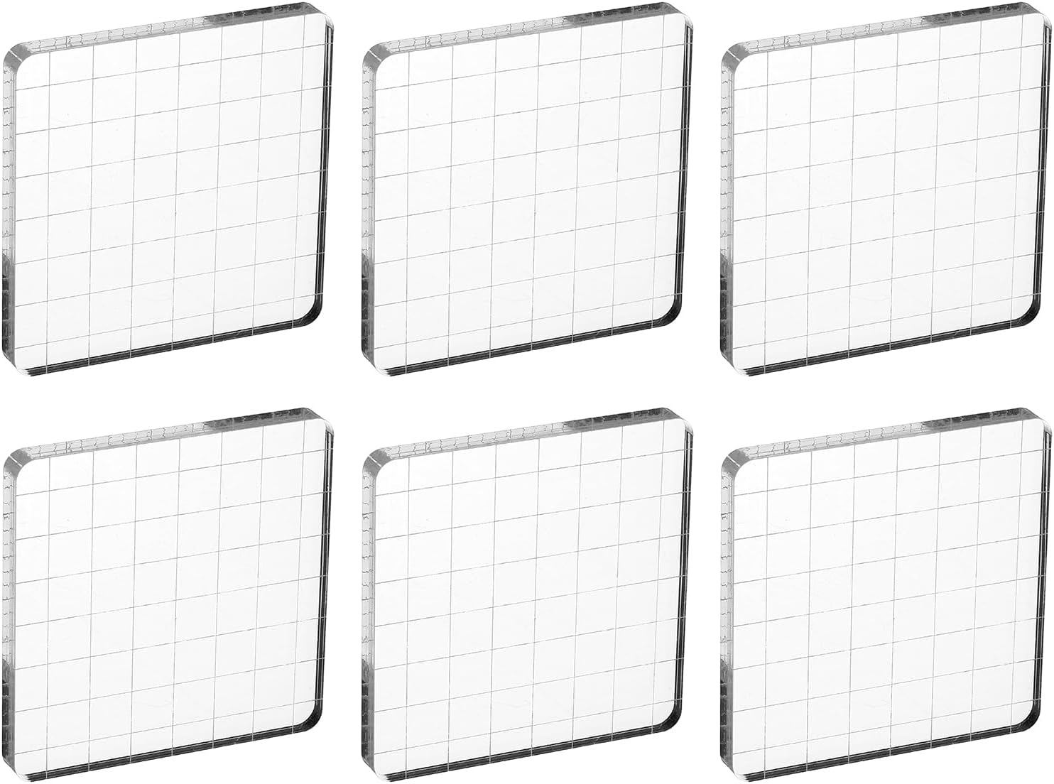 PATIKIL 3"x3" Acrylic Stamp Block, 6Pcs Clear Stamping Block with Grid Lines Decorative Mounting Blocks Square for Scrapbooking DIY Crafts Card Making