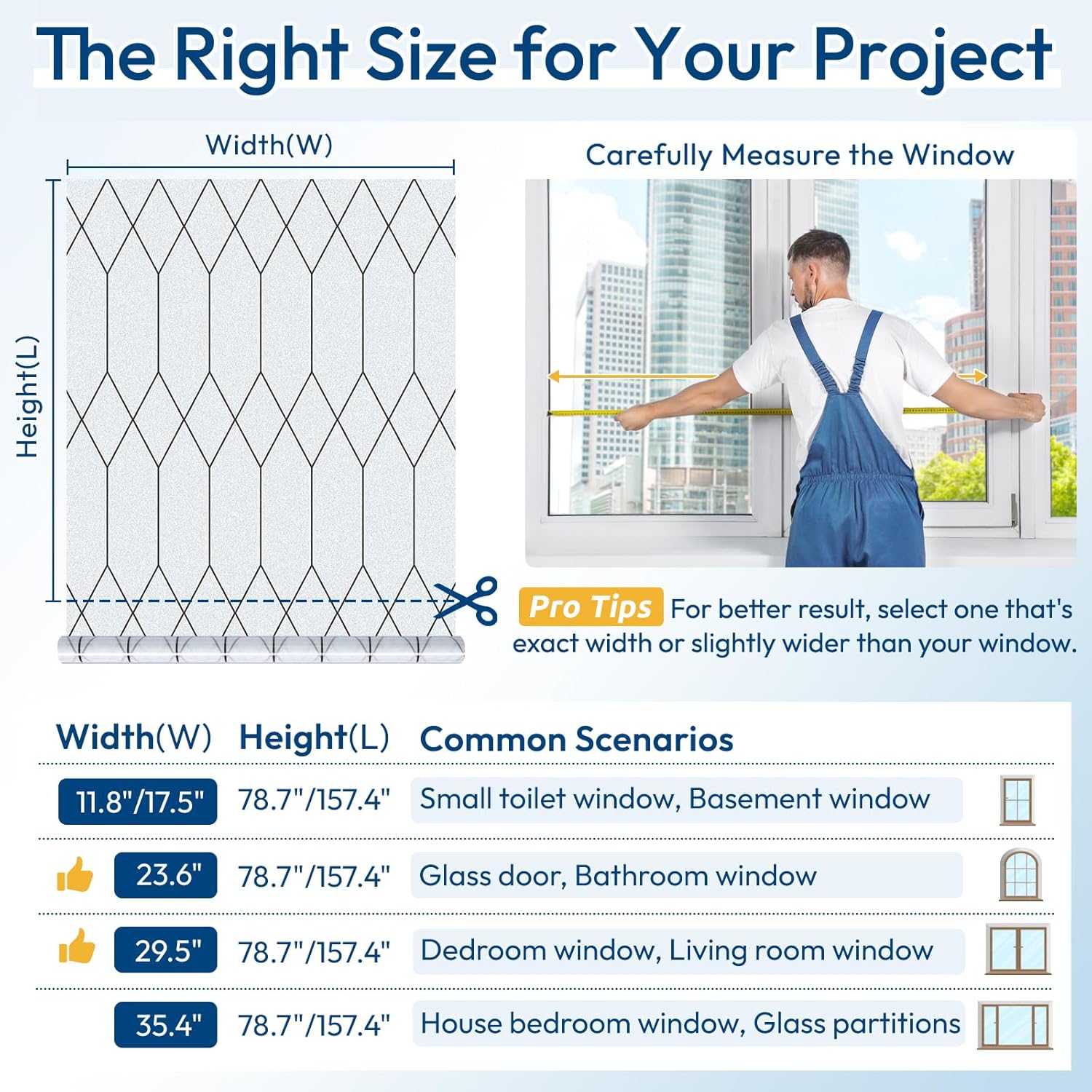 - Fits Any Space: Customize to fit any window or glass door! You can trim this privacy window film easily for a seamless look in bathrooms, offices, or living areas