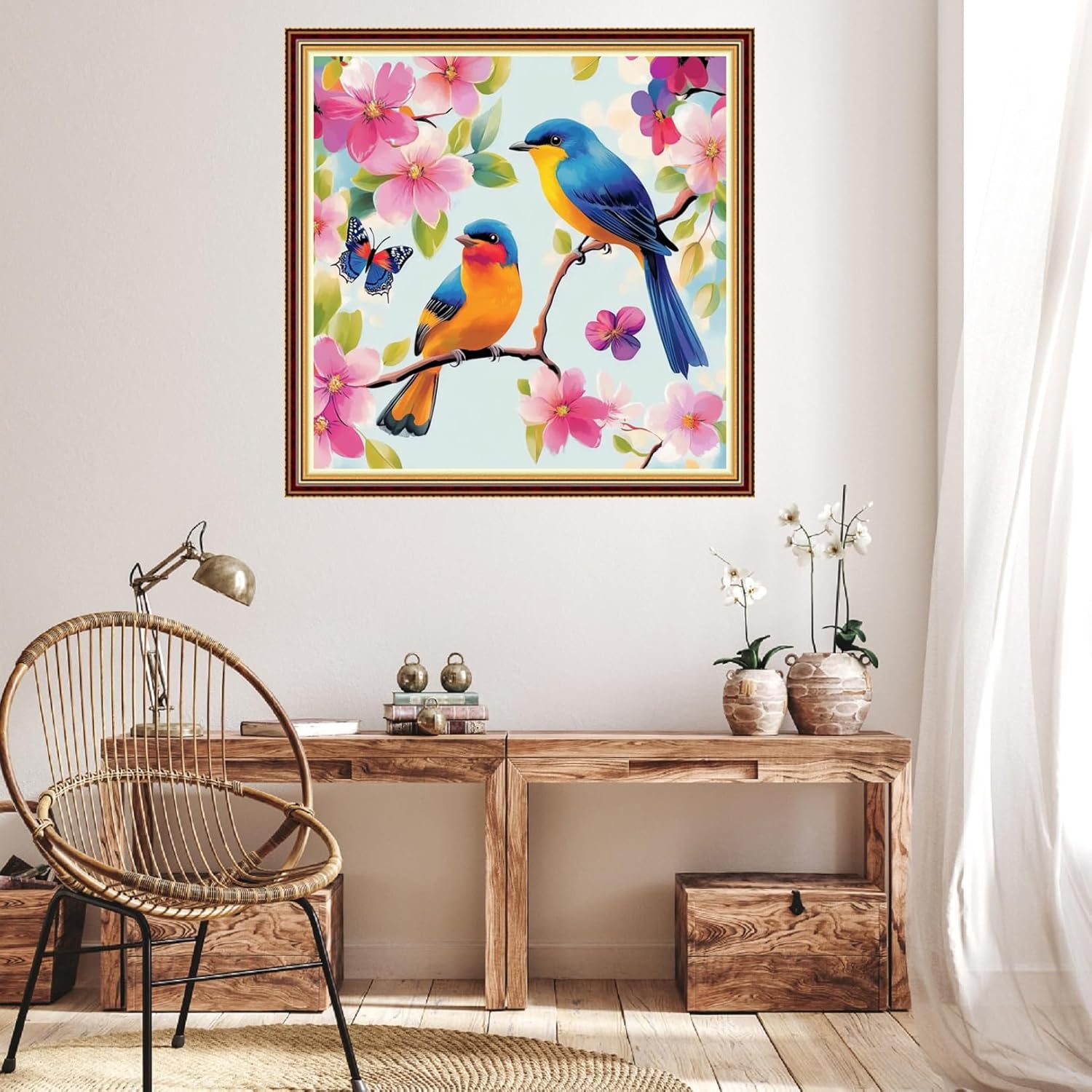 Hopeart Stamped Cross Stitch Kits for Beginner Embroidery Kits for Beginners Adults DIY 11CT Cross Stitch Patterns Needlepoint Kits Crossstitching Kits-Couple Bird 18x18 inch