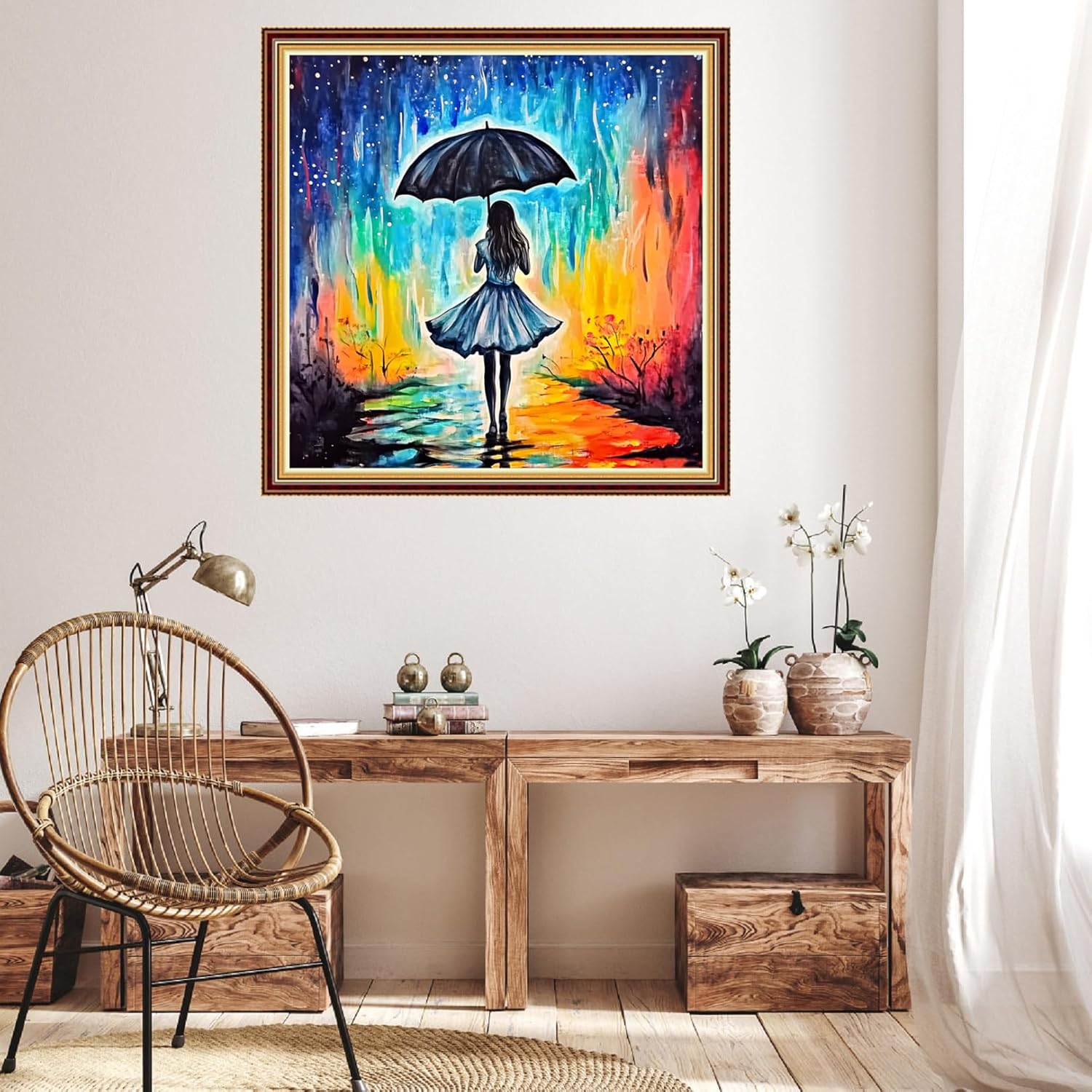 Hopeart Stamped Cross Stitch Kits for Beginner Embroidery Kits for Beginners Adults DIY 11CT Cross Stitch Patterns Needlepoint Kits Crossstitching Kits-Rainy Night Girl 18x18 inch