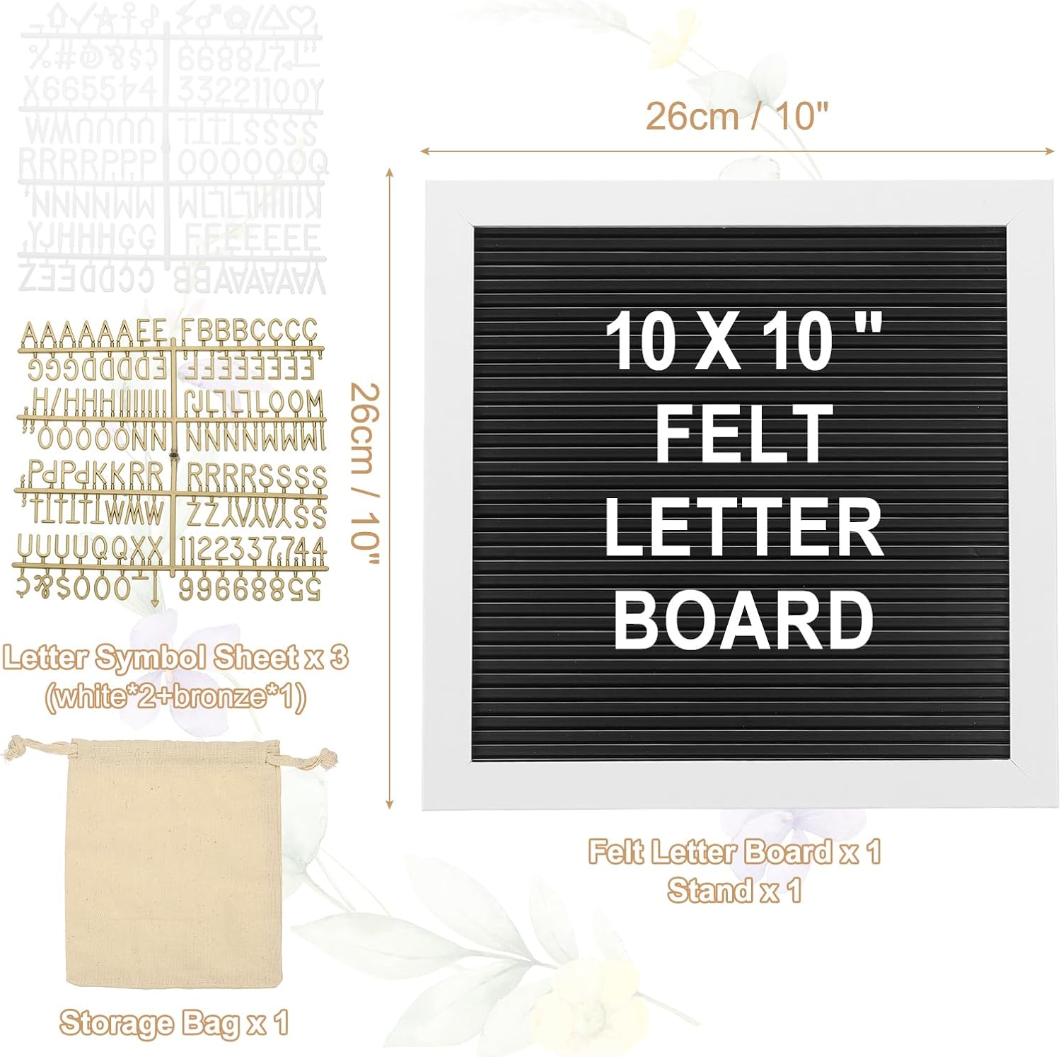 PATIKIL Felt Letter Board, 10x10Inches Black White Wooden Changeable Message Board with Storage Bag Stand for Kitchen Menu Classroom Farmhouse Decor Notes, White Bronze Letter
