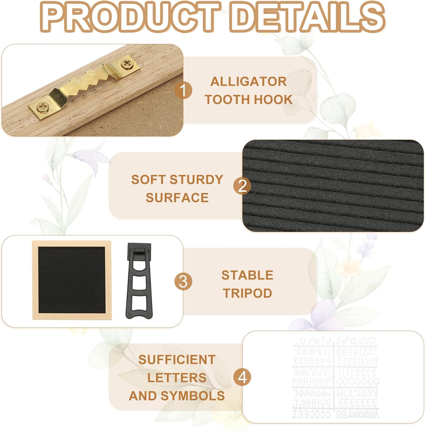 - Material: Wood, Felt, Plastic;Board Color: Black Wood;Letter Color: White;Size: 26x26cm / 10x10";Installation Method: Hanging, Stand Supported;Accessories: Storage Bag, Stand;Package Includes: Message Board x 1, Letter Set x 3, Storage Bag x 1, Stand x 1
