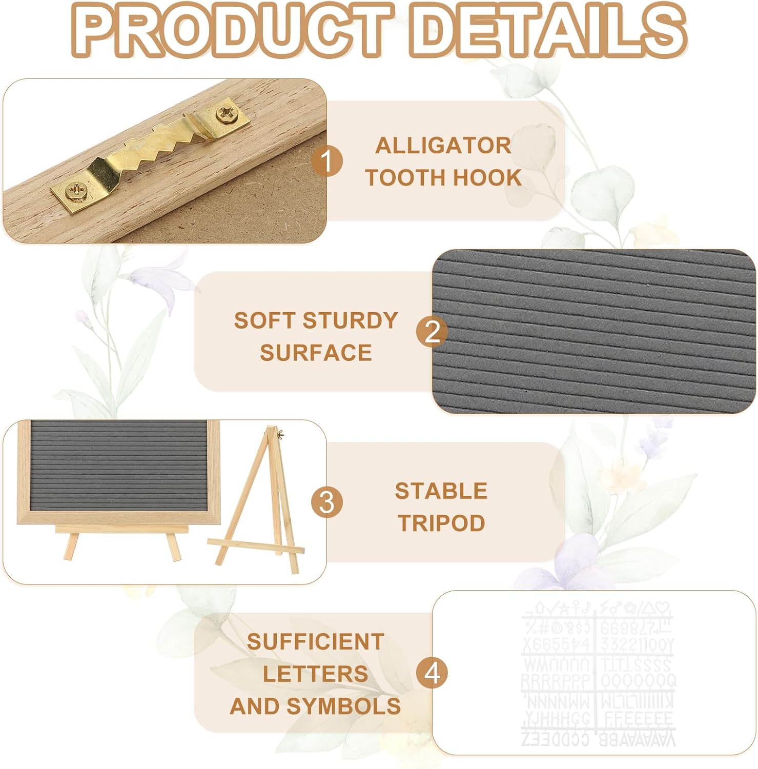 - Material: Wood, Felt, Plastic;Board Color: Gray Wood;Letter Color: White;Size: 30.5x41cm / 12x16";Installation Method: Hanging, Stand Supported;Accessories: Storage Bag, Stand;Package Includes: Message Board x 1, Letter Set x 3, Storage Bag x 1, Stand x 1