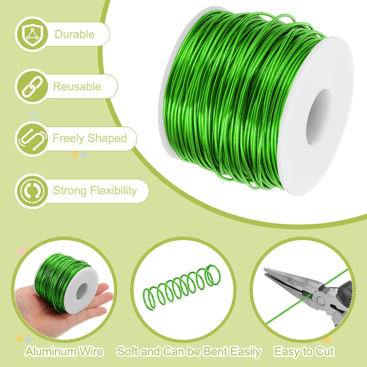 MECCANIXITY 15 Gauge Anodized Aluminum Craft Wire Bendable Bonsai Training Wire 223 Feet 1.5mm for Sculpting Crafts Wreath Floral Beading Jewelry Making, Green
