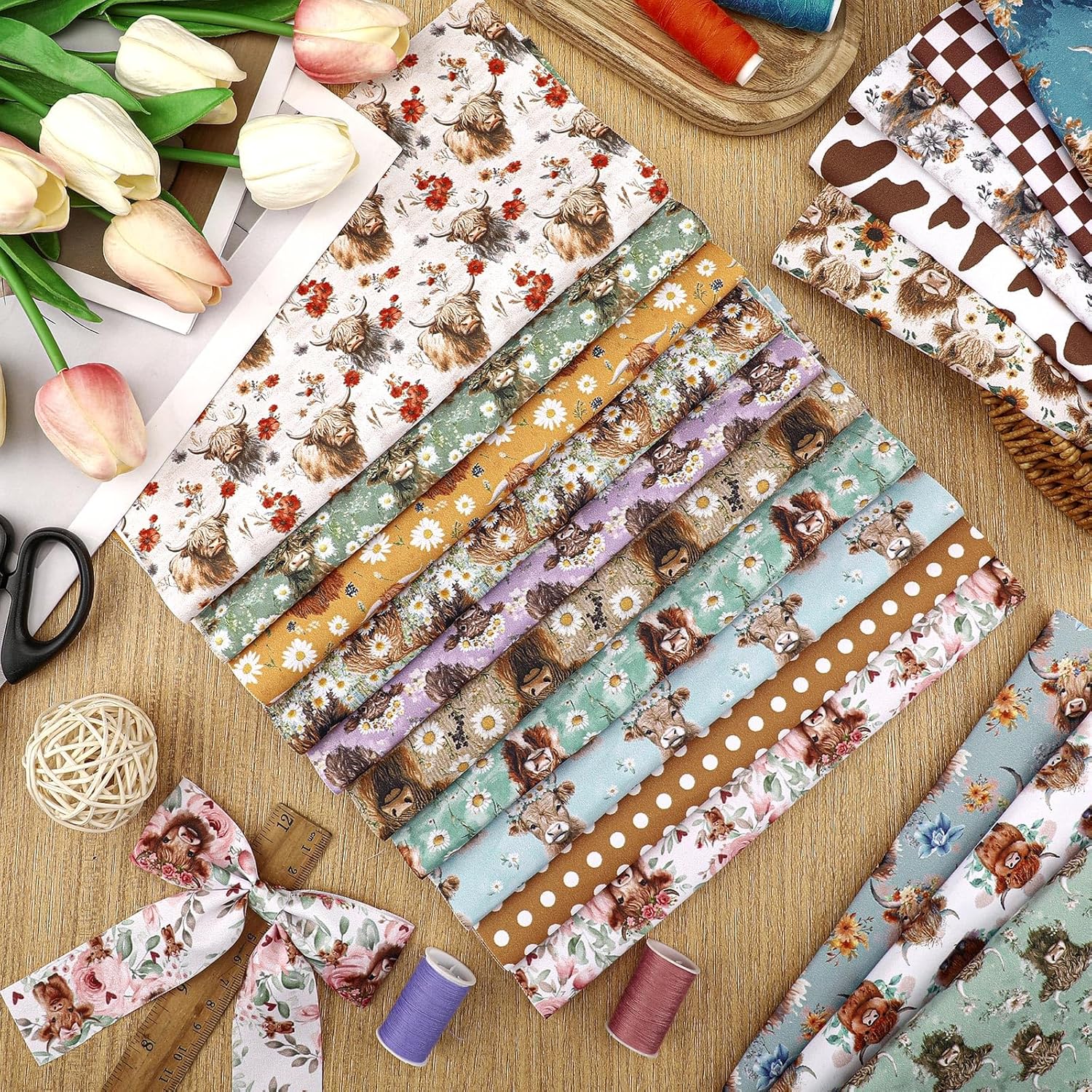 - Distinct and Clear Patterns: our highland cow quilting fabric roll takes pride in their clear and exquisite patterns; Ranging from the cheerful figure of highland cow to the delicate outline of sunflower, these patterns add a charming touch to your crafts and ensure they catch the eye of every observer