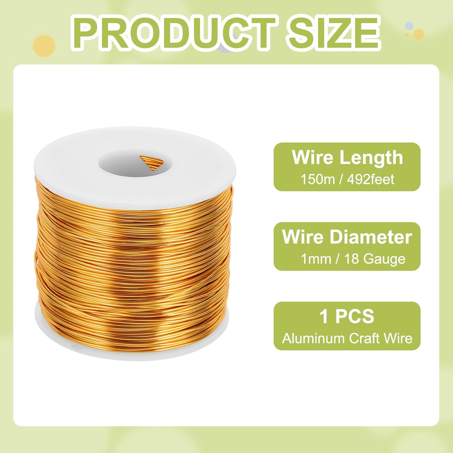 - Package contains 1pcs x Aluminum Craft Wire, wire diameter: 18 Gauge (1mm), wire length: 492 Feet (150m)