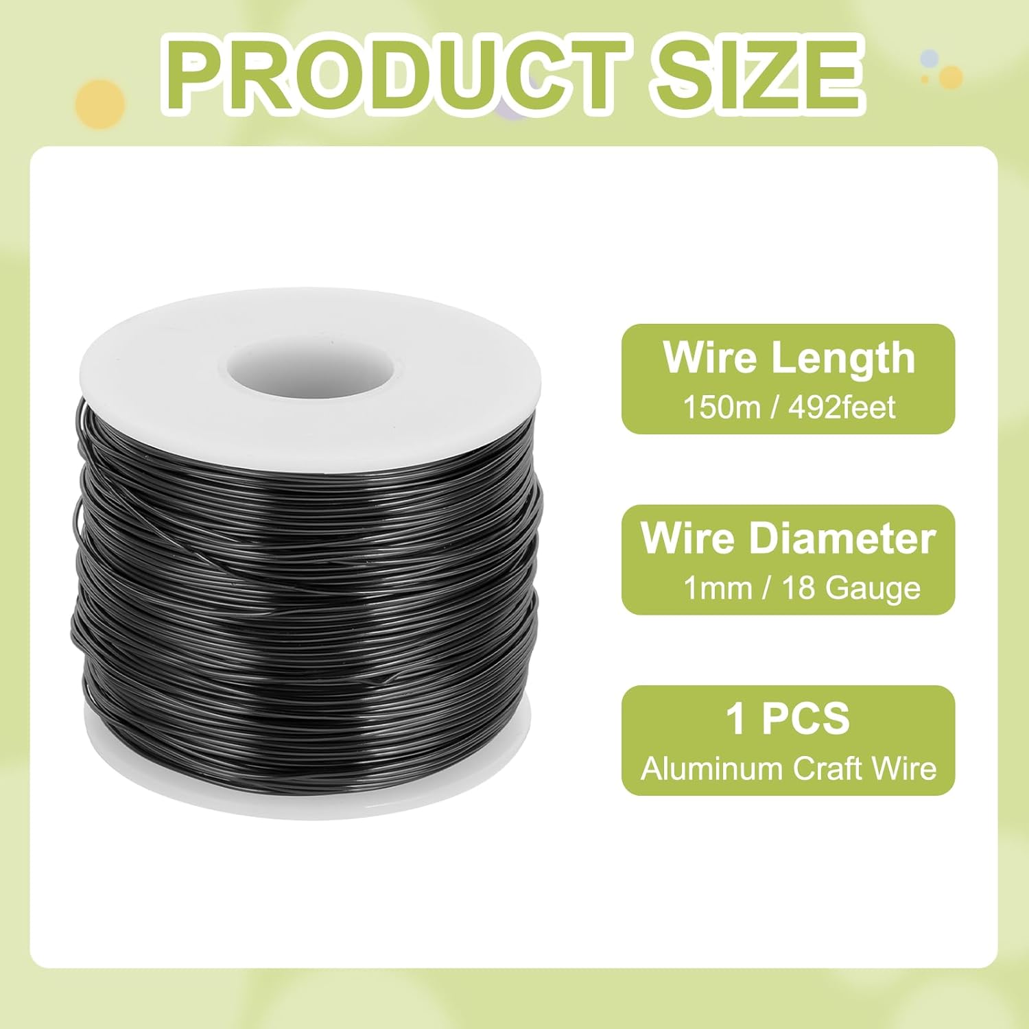 - Package contains 1pcs x Aluminum Craft Wire, wire diameter: 18 Gauge (1mm), wire length: 492 Feet (150m)