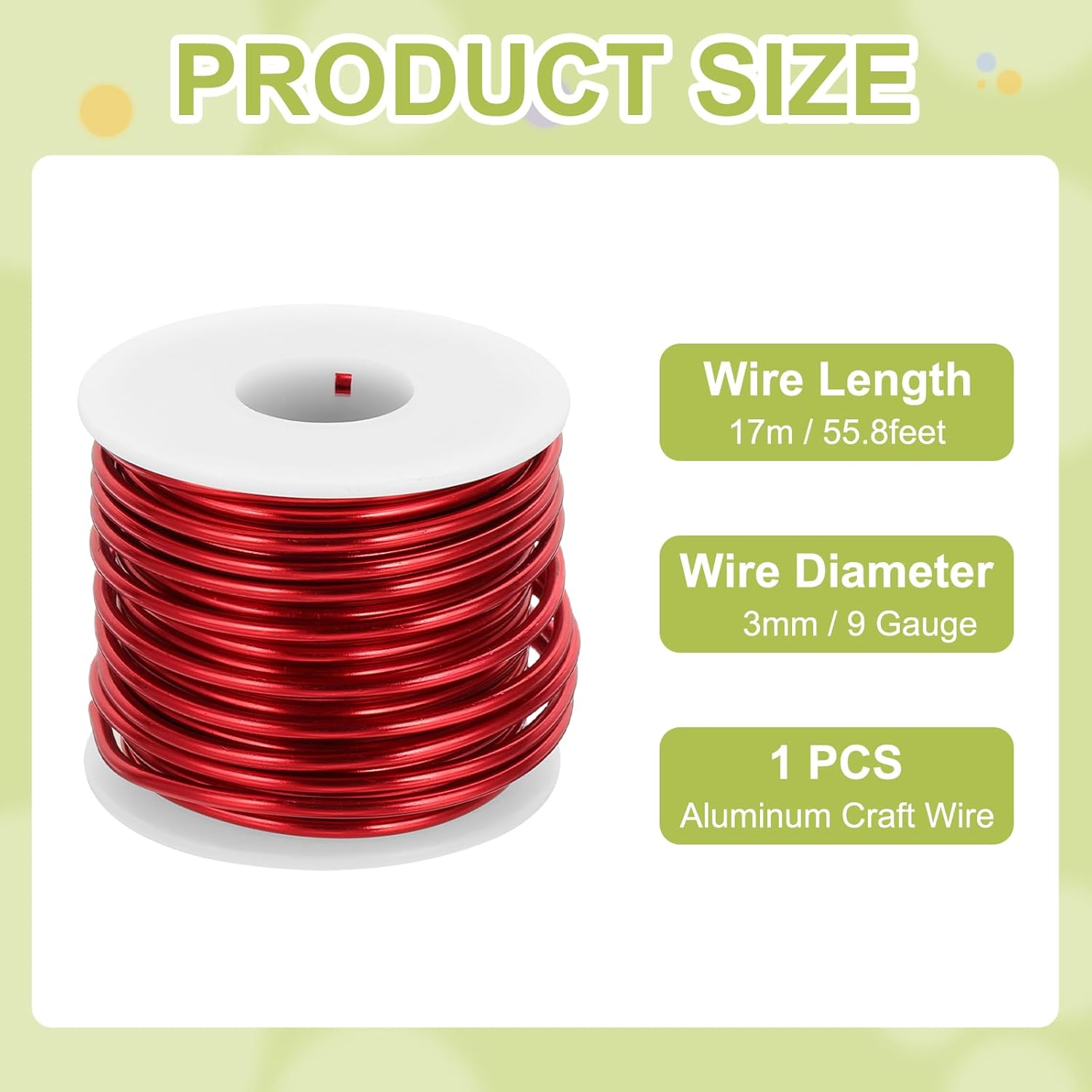 - Package contains 1pcs x Aluminum Craft Wire, wire diameter: 9 Gauge (3mm), wire length: 55.8 Feet (17m)
