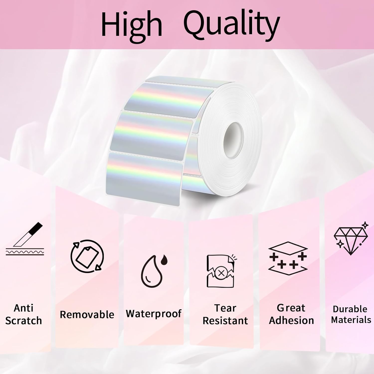 - Package Content: You will receive 300 Holographic Thermal Labels/Roll, printable size: 1’’x2’’ (25mm x 50mm), No Ink Toner or Ribbons Needed