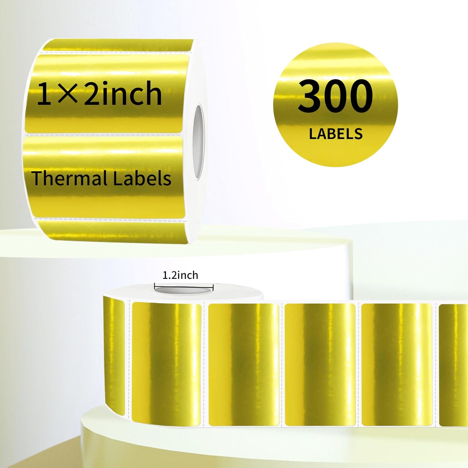 2x1 Inch Thermal Labels, Holographic Gold Thermal Printer Stickers, Waterproof Self-Adhesive Shipping Label Printer Sticker for Barcode, Name, Address, 300 Labels/Roll