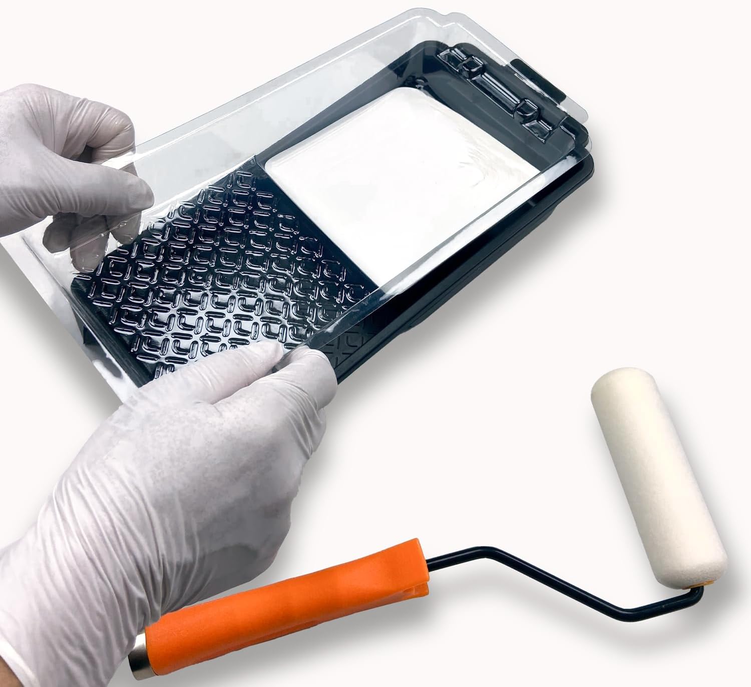 - The tray liner textured surface filters excess paint from the roller covers and brushes to ensure smooth and even apply every time.