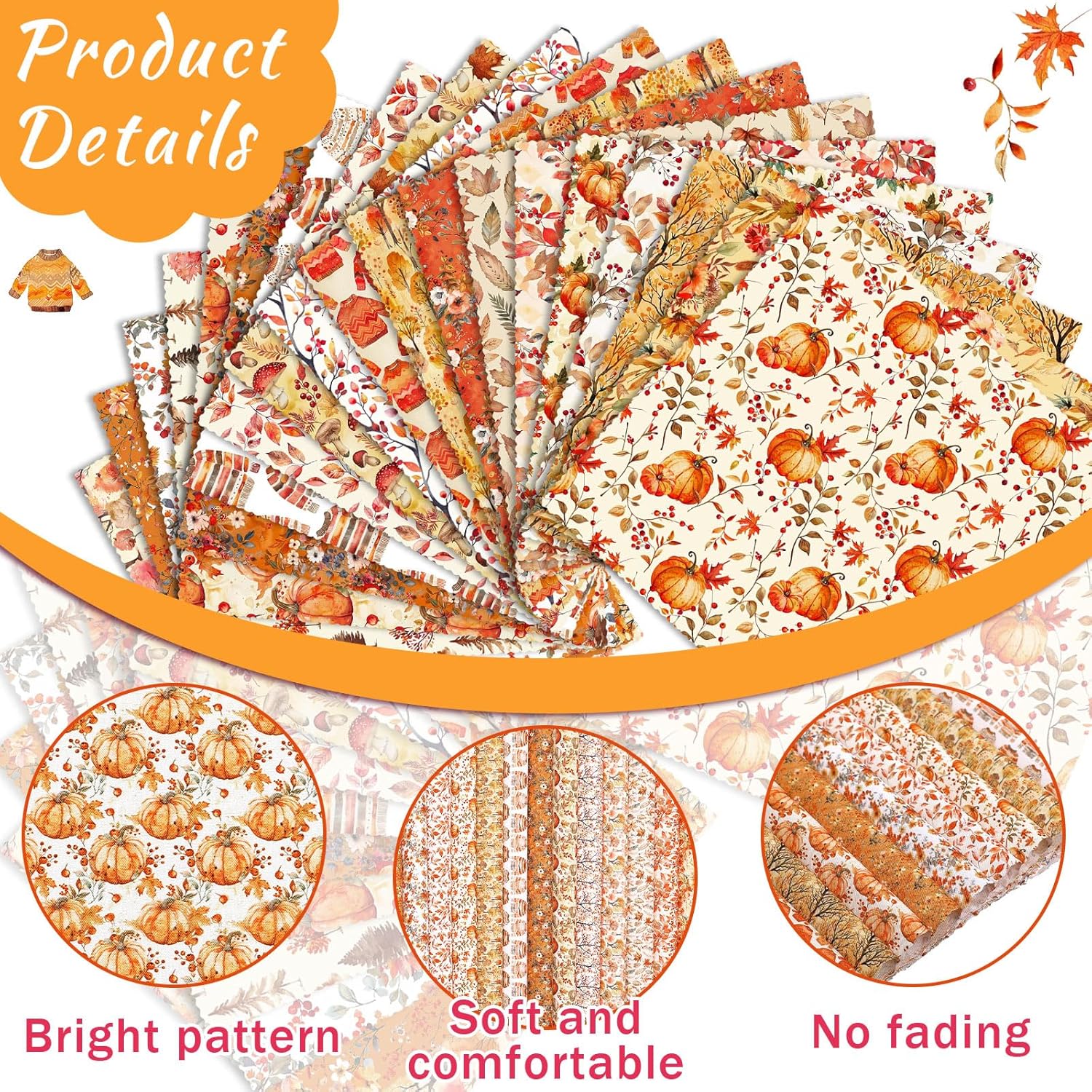 Ganeen 60 Pcs 10 x 10 Inch Fall Quilting Fabric Squares Thanksgiving Fat Patchwork Precut Strips Retro Pumpkin Maple Leaf Bundles for Harvest Autumn Holiday DIY Craft Sewing Quilt Material Handmade