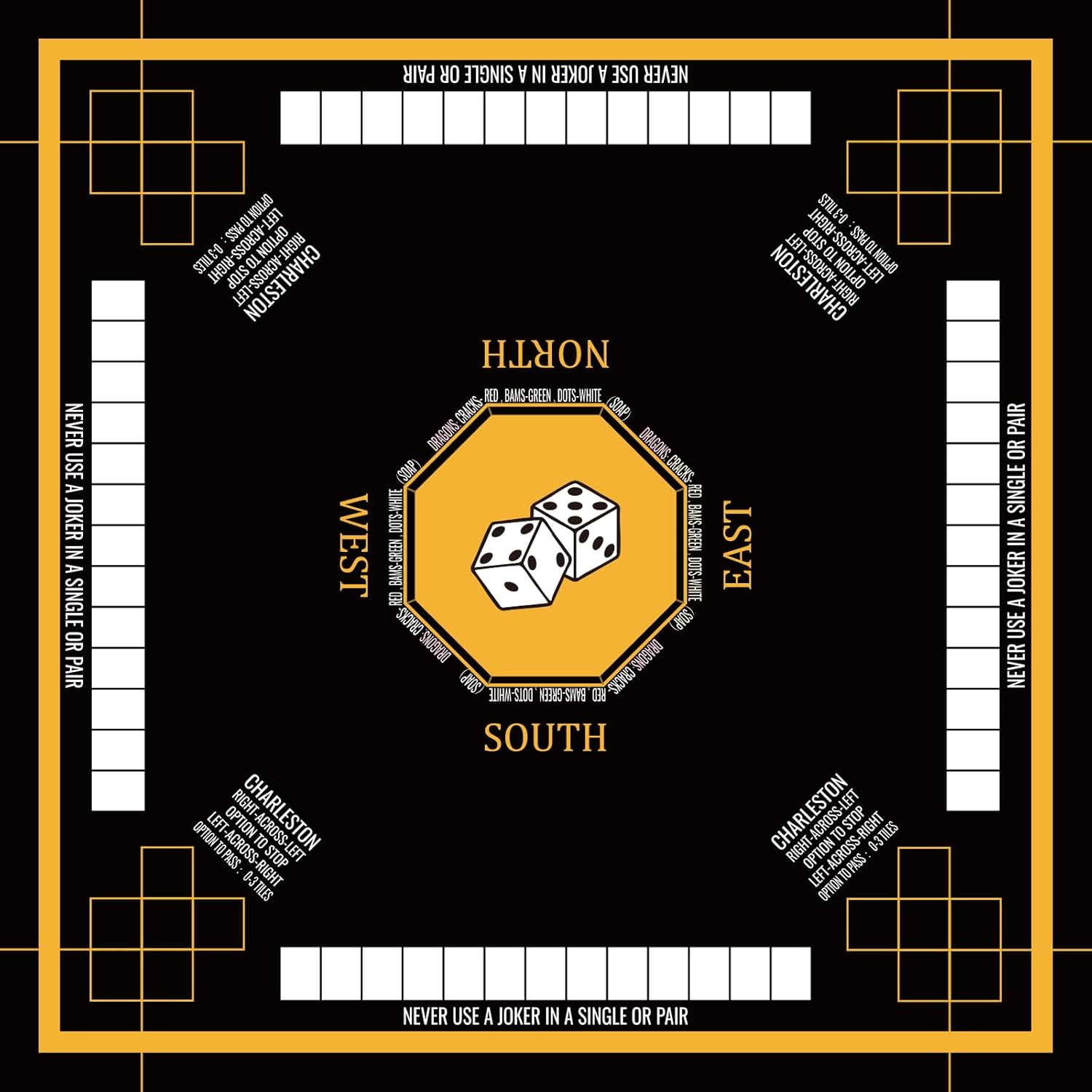 - PREMIUM DESIGN: Professional-grade American Mahjong mat featuring a green background with clear directional markings and a centered dice motif