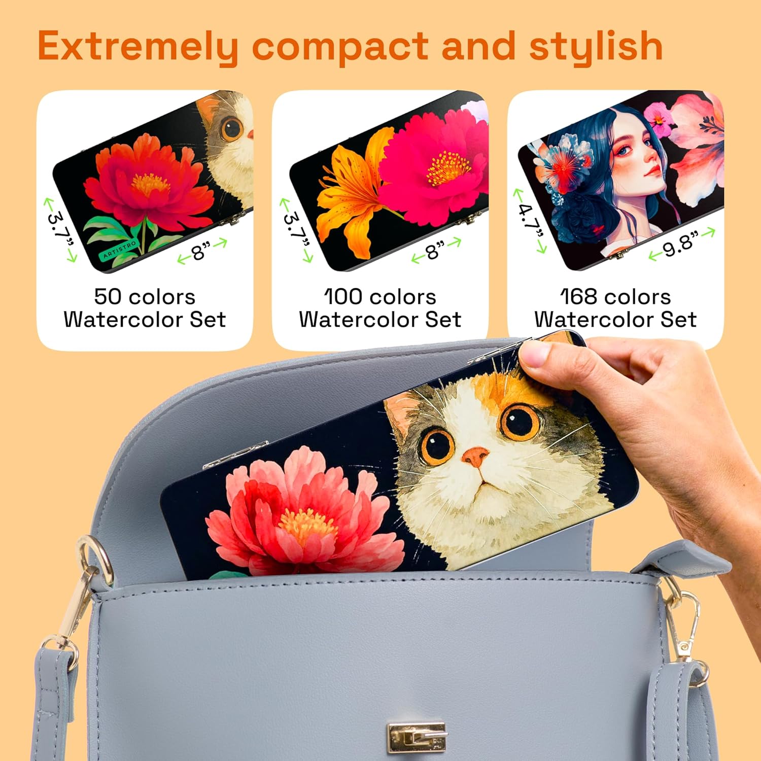 - Portable Metal Case: All 50 metallic colors and tools are neatly packed in a durable tin case. Compact and lightweight, this watercolor set is ideal for travel, classrooms, or plein air painting.
