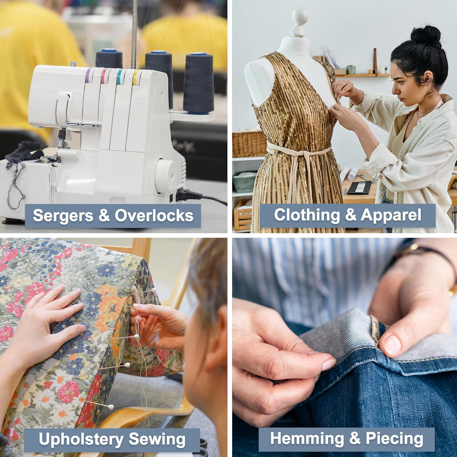 - Sturdy Polyester Serger Thread on Cones: Compared to other cone thread for sergers, the fray & shrink-free serger machine thread is stronger, with minimal lint, can withstand high-speed sewing & tension, prevent breakage & ensure long-lasting seams.
