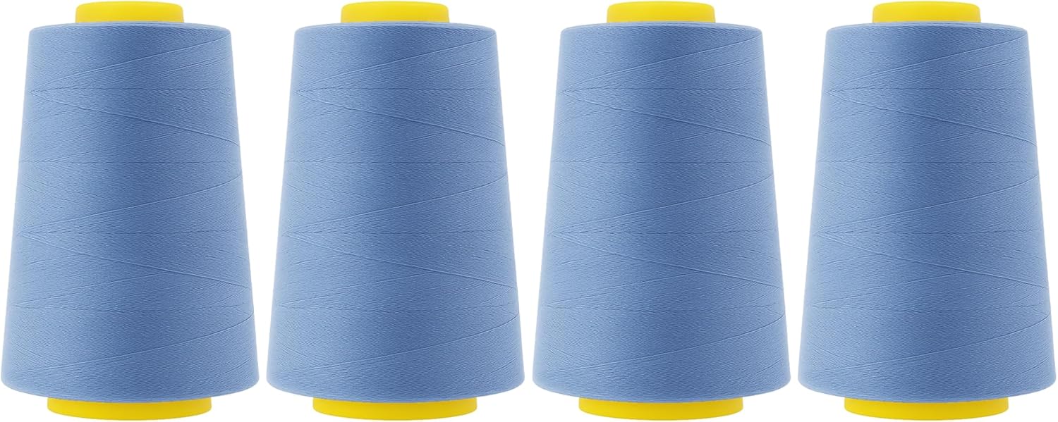 - Easy to Use Steel Blue Sewing Thread Cones: The steel blue sewing thread lays flat and goes through loopers & needles without friction & yields clean lines. The serger sewing thread pairs well with stretch & non-stretch fabric, leather, fleece, denim, flannel, vinyl, & lace.
