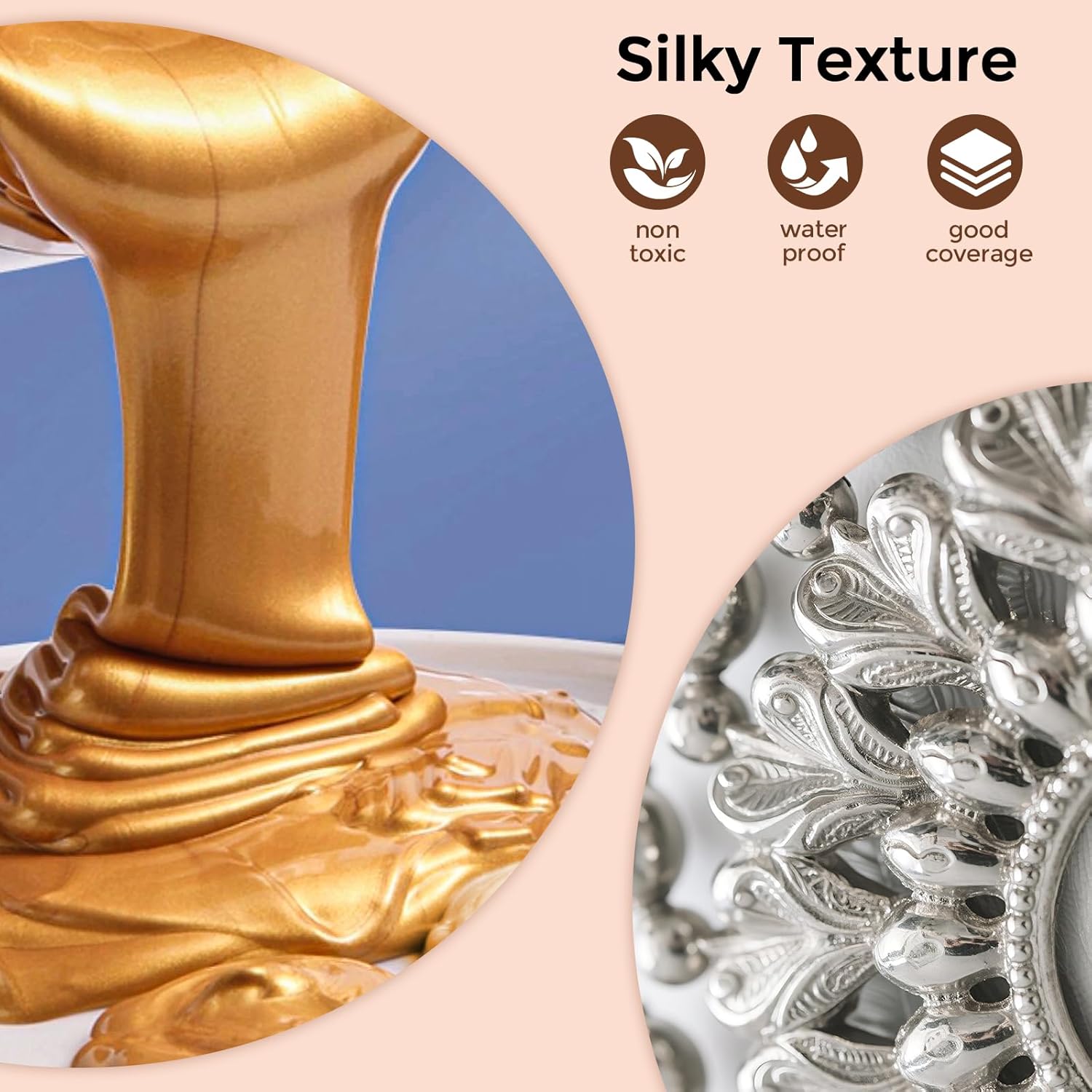 - Easy To Use: You need to remove oil or dust on the work surface, keep surface clean and dry first. Then mix the gold paint evenly before you start painting. Paint glides on smoothly and dries quickly with minimal streaking—perfect for both large fills and fine detail work.