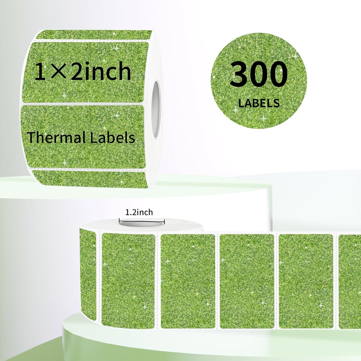 2"x1" Holographic Thermal Labels Stickers, Glitter Direct Thermal Printer Labels, Waterproof Self-Adhesive Address Shipping Label Stickers, 300 Sheet/ 1 Roll, Holographic Shiny Green