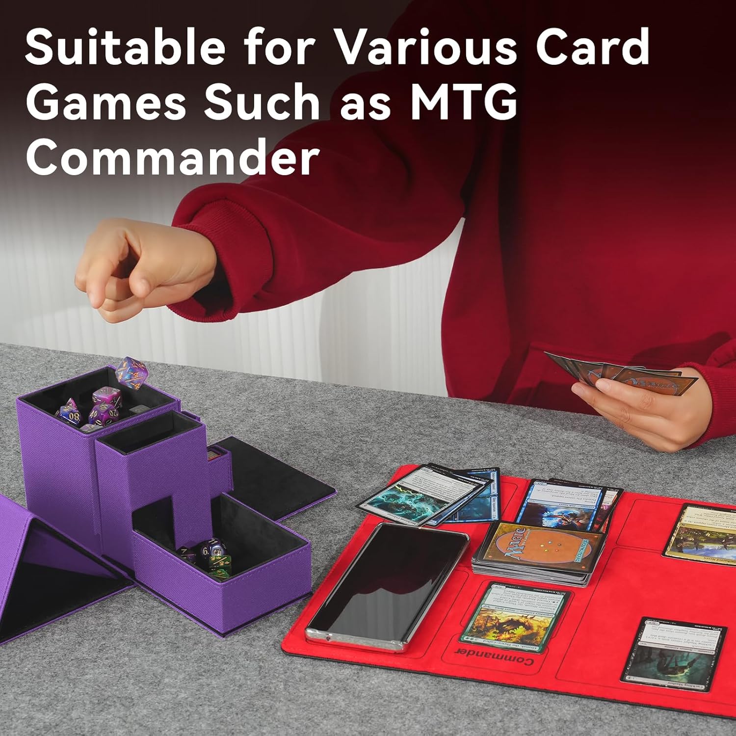 Dice Tower & Dice Tray Storage Box, 3 in 1 Dice Holder Case (Rolling Tower Storage Drawers, Dice Rolling Tray), Leather Magnetic Closure DND Accessories Gifts for RPG MTG, Violet/Black