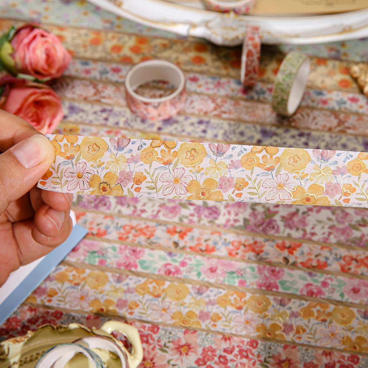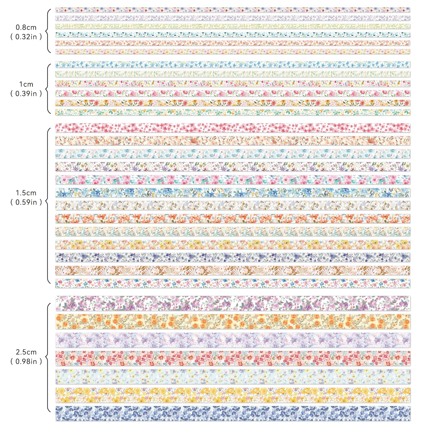 - π 32 Rolls floral designs--32 Rolls Washi Tape, 0.31 inch(8mm)wide x 6 Rolls, 0.39 inch(10mm) x 6 Rolls, 0.59 inch(15mm)wide x 13 Rolls, 0.98 inch(25mm) x 7 Rolls, each roll is 2m. 32 different patterns, this oil painting washi tape adds color and vitality to the pasted items, making daily life more interesting.