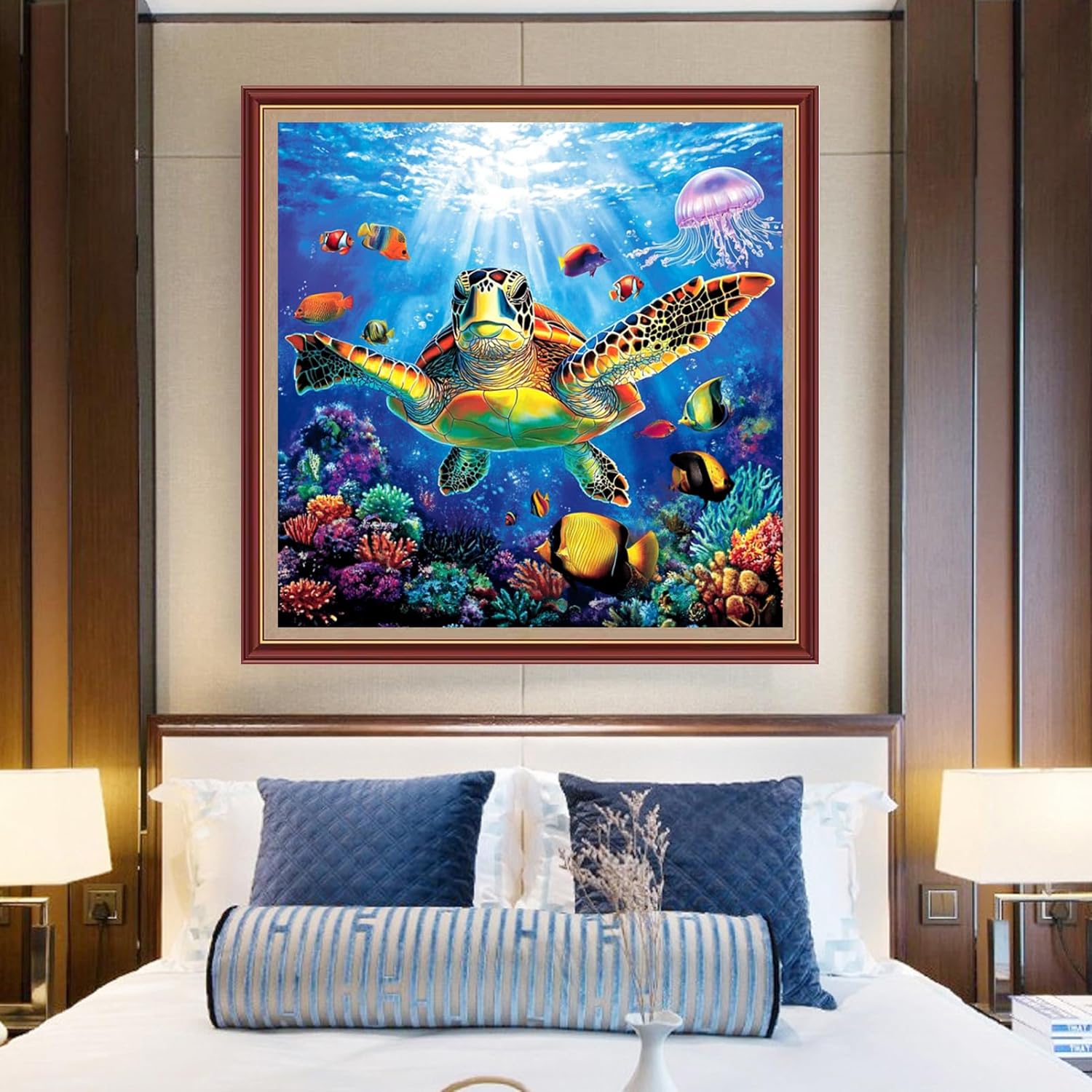 DMCXART Counted Cross Stitch Kits for Adults Needlepoint Kits Unprinted Cross Stitching Embroidery Kit 11CT Cross Stitch Supplies-Turtle Scenery 18x18 inch