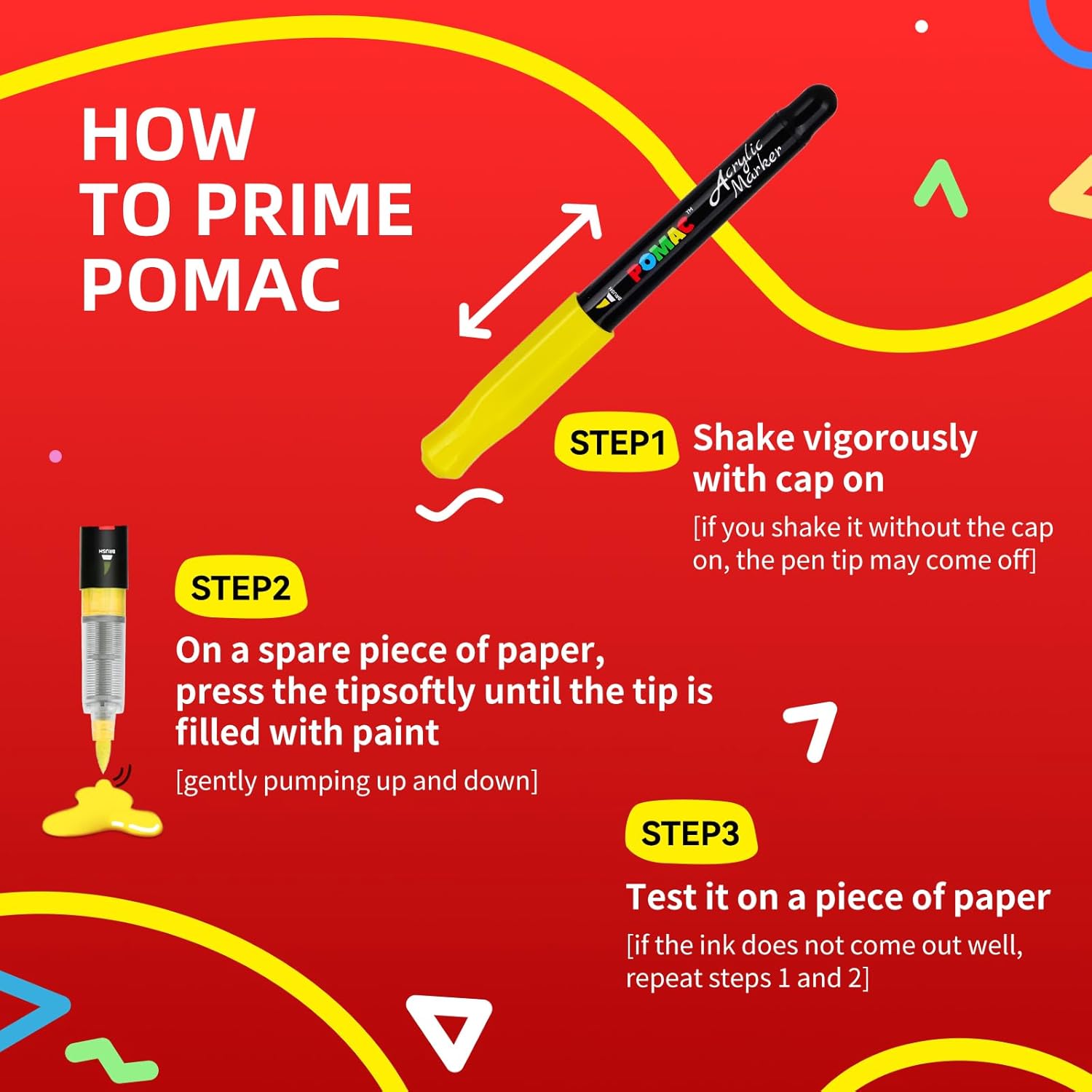 - Vibrant Colors & Smooth Flow: POMAC water-based acrylic markers feature novel, bright and vivid colors that provide smooth, your creativity knows no bounds. Enjoy a wide range of hues and keep your markers going for years to come. Liquid acrylic markers with a paint-like ink that won't bleed through paper and ensuring consistent, smooth application with every stroke for vibrant, flawless results.