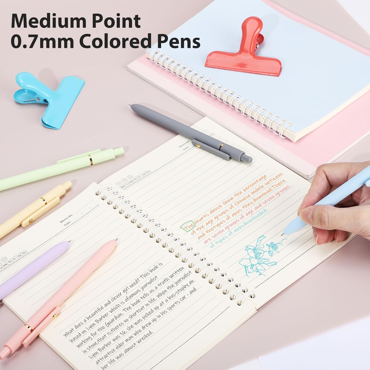 - SMOOTH WRITING & QUICK DRYING COLORED PENS: Each pen features a 0.7mm medium point tip that delivers skip-free glides all the time. High-quality ink dries quickly, so no smearing or smudging will occur during writing