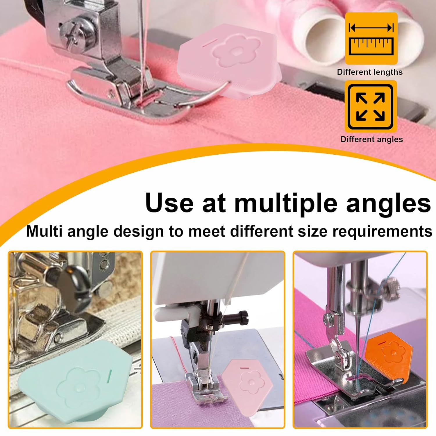 Utoolmart 3Pcs Magnetic Seam Guide for Sewing Machine, Multifunctional Polygonal Hemmer Guide with Scale, Magnet Hem Guide for Sewing Machine, Universal Sewing Accessories and Supplies (3colors)