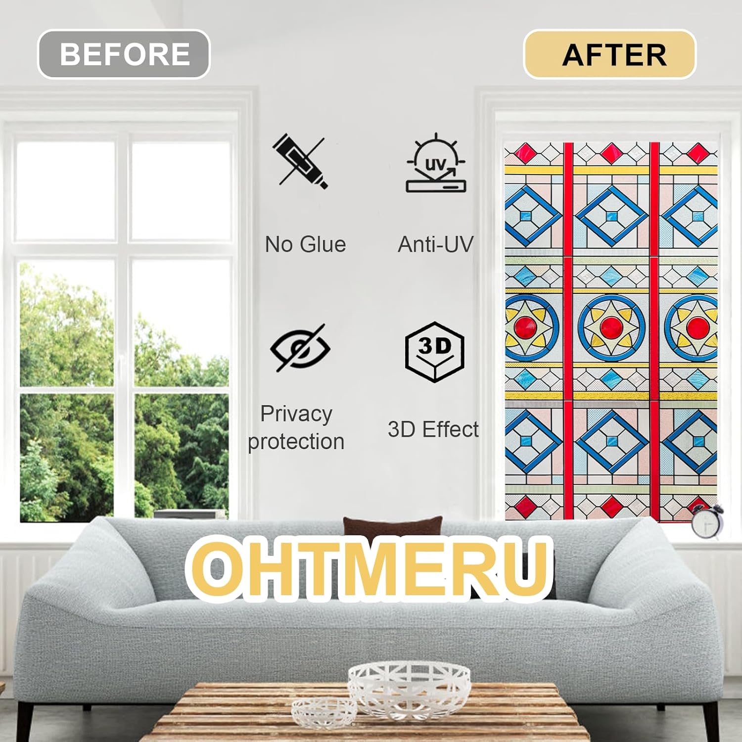 - Suitable for Various Window Shapes-Available in multiple sizes, this film can be easily cut to fit a wide range of window styles, making it perfect for use on front doors, bathrooms and bedrooms etc. For any questions please contact our dedicated OHTMERU support team.
