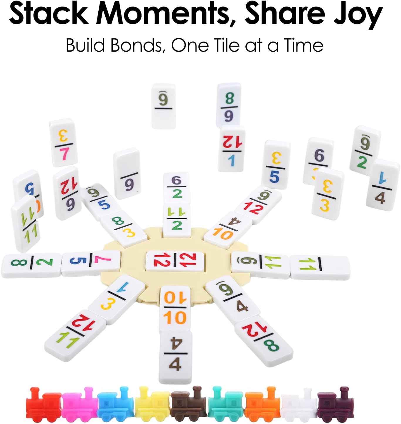 - All-in-One Travel Game Set: Includes 91 Double 12 domino tiles, 9 colorful trains, 1 hub, 8 wooden holders, 1 drawstring bag, 1 game booklet, and a sturdy EVA case. Perfect for 2β8 players on the go