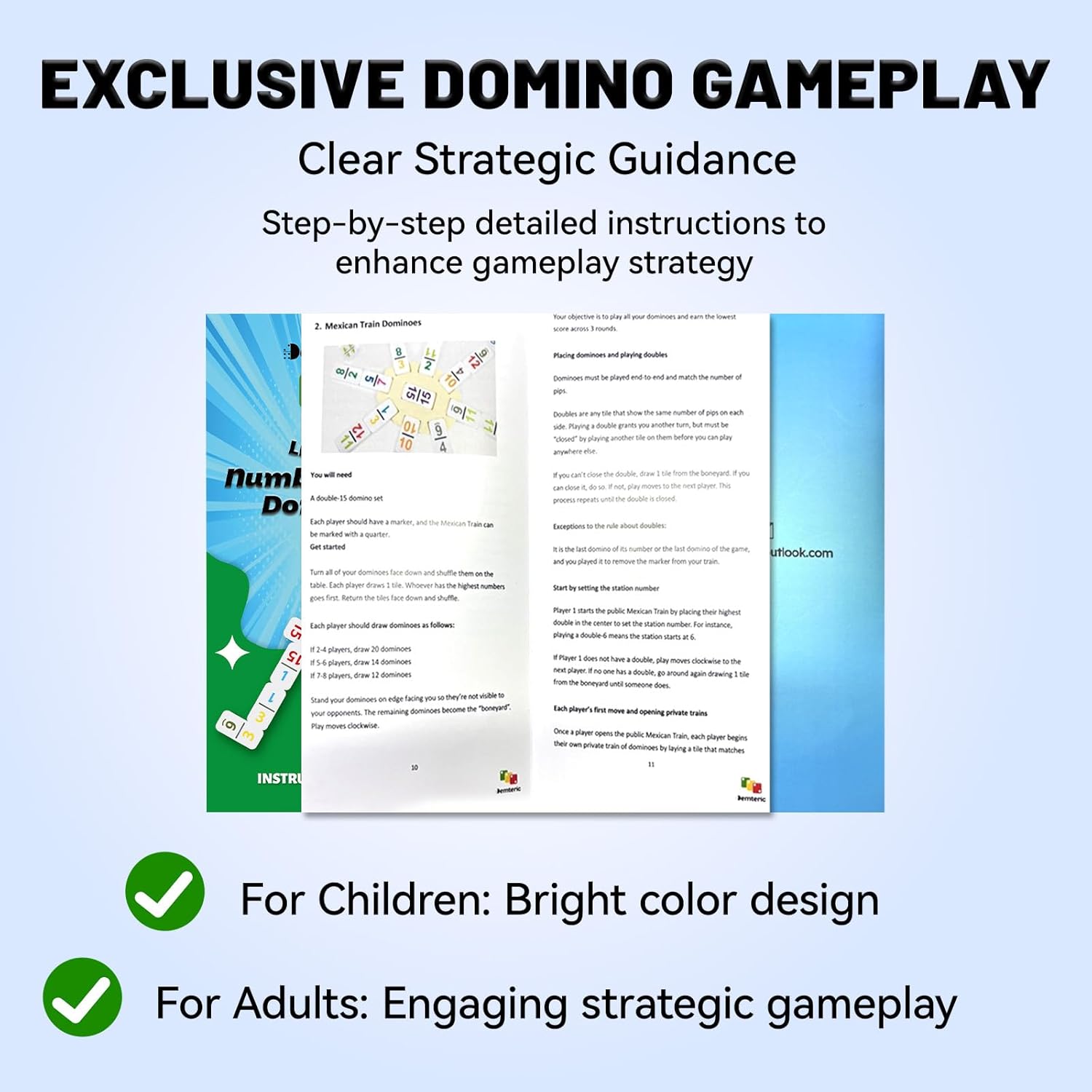 - EXQUISITE GAME TILES: Crafted from high-quality materials, the premium dominoes tiles offer a smooth feel, vibrant colors, and easy-to-read numbers, ensuring an engaging and visually appealing experience in fun family games