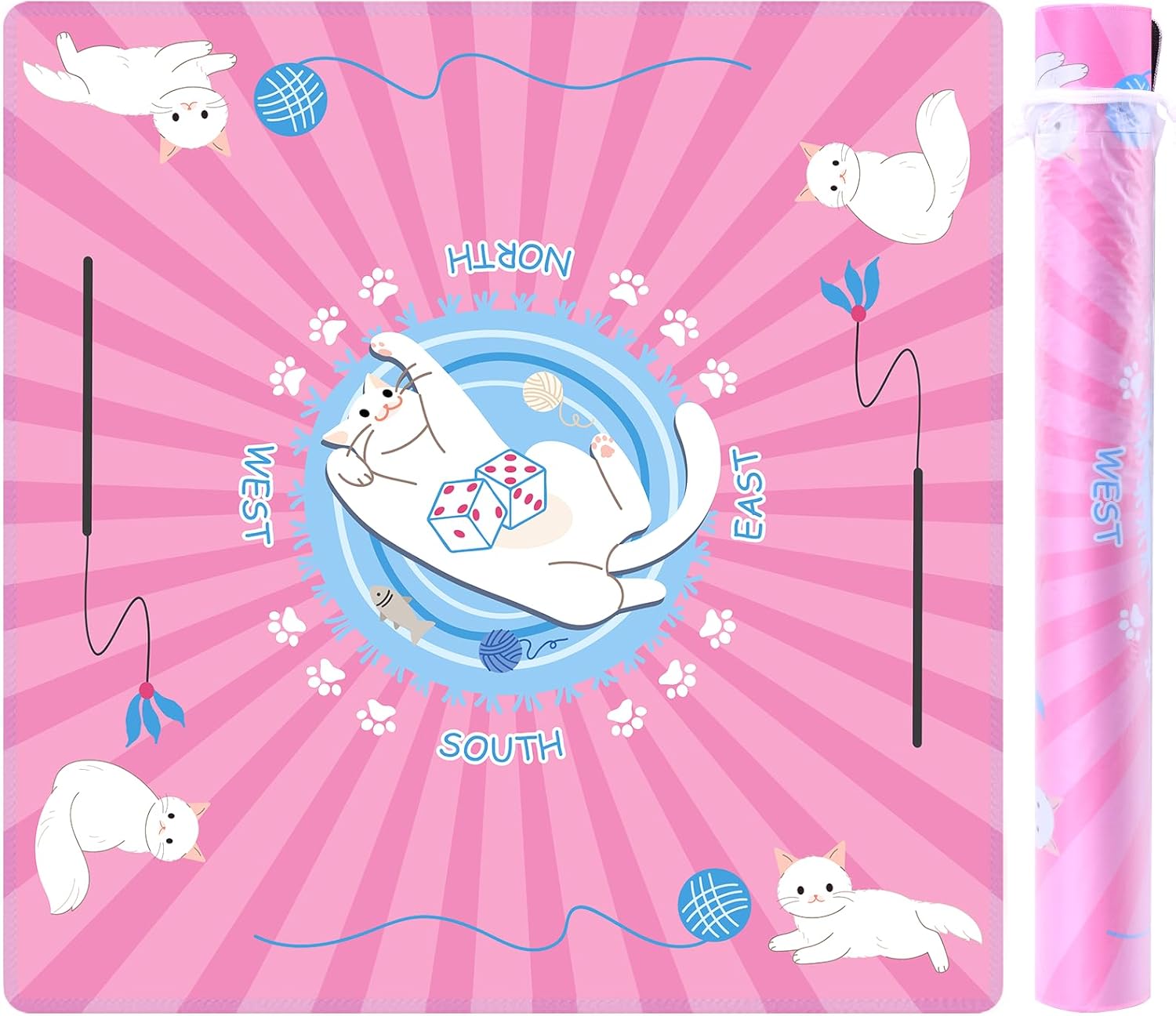 - Purr-fect Mahjong Table Mat Design: Central dice area showcases a cute cat hugging dice, adding whimsy to your game night. Sized at 31.5"x31.5" (80cmx80cm) for spacious play.
