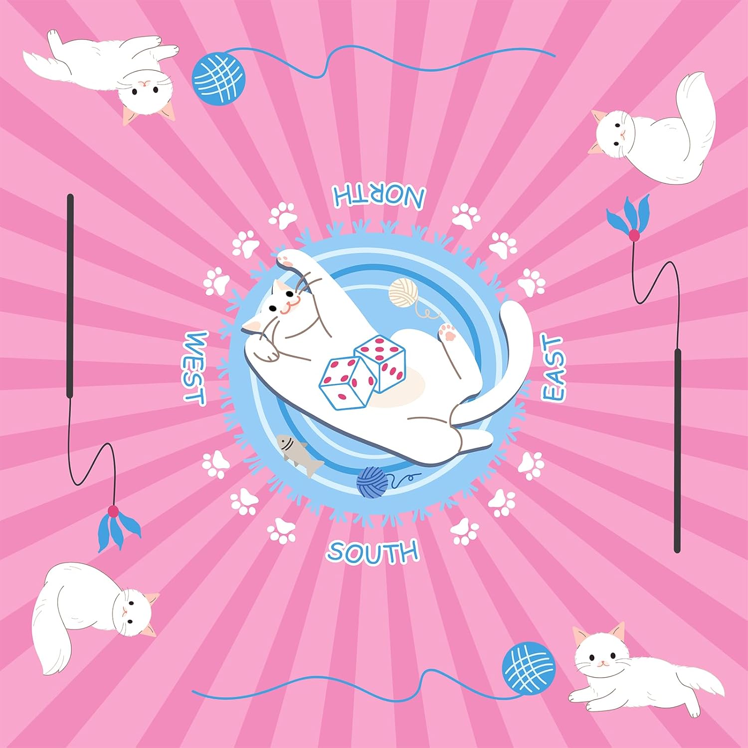 - Adorable Cat-Themed Mahjong Mat for Table: Features charming pink cat motifs, including a playful yarn ball and cat teaser pattern for tile placement, blending style and function for mahjong lovers.
